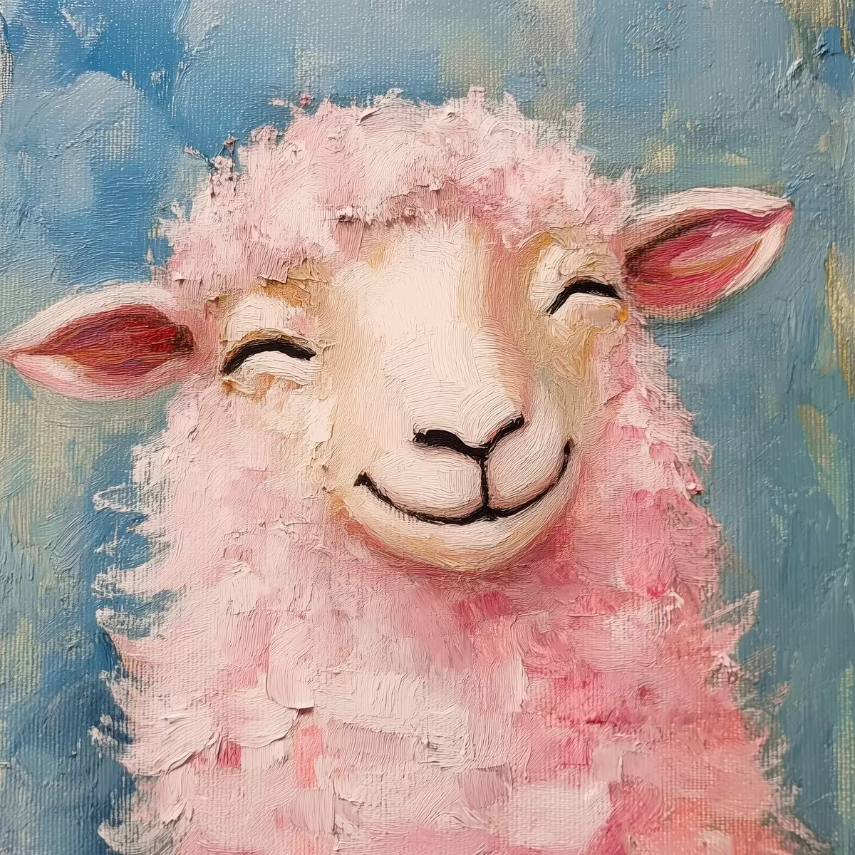 Peinture Bélier joyeux avec de la laine rose Art. s39911