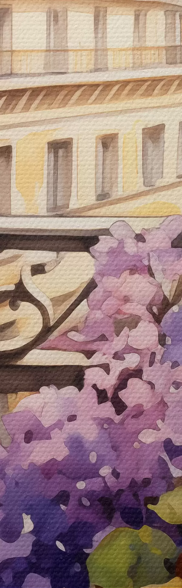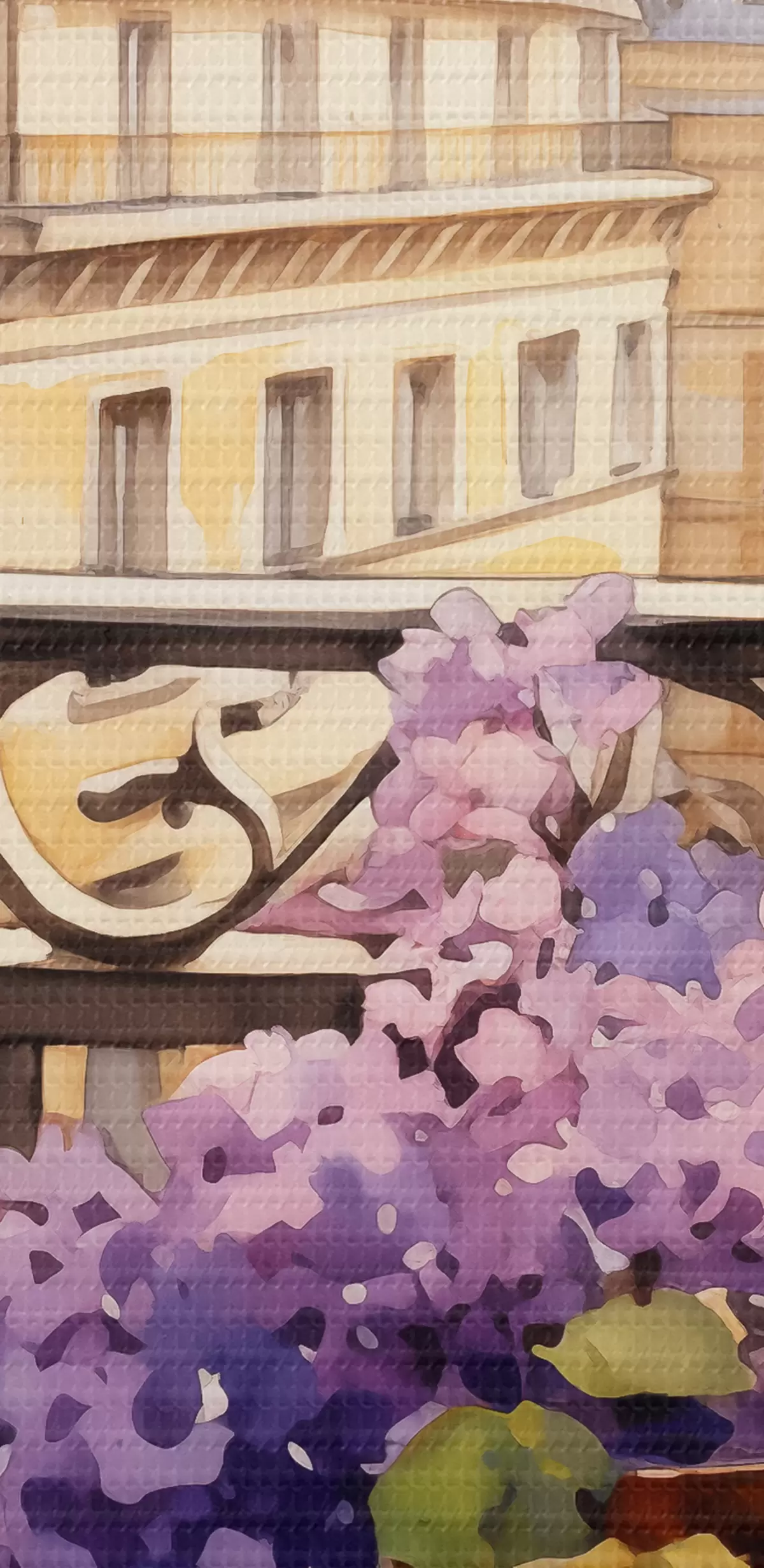 Peintures Violettes en pot sur un balcon à Paris aquarelle s39931
