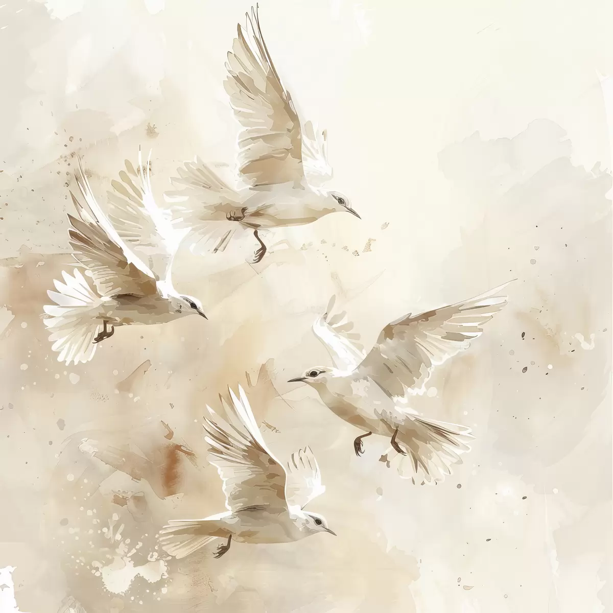 Peinture Oiseaux volants à l'aquarelle, couleurs pastel douces, abstraction Art. s39973