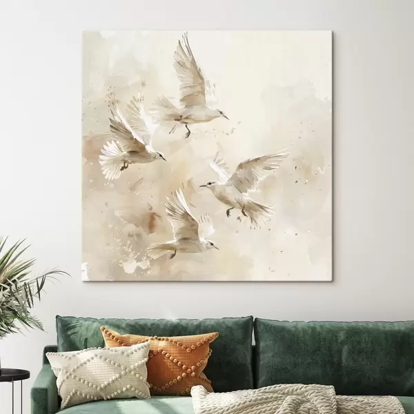 Peintures Oiseaux volants à l'aquarelle, couleurs pastel douces, abstraction s39973