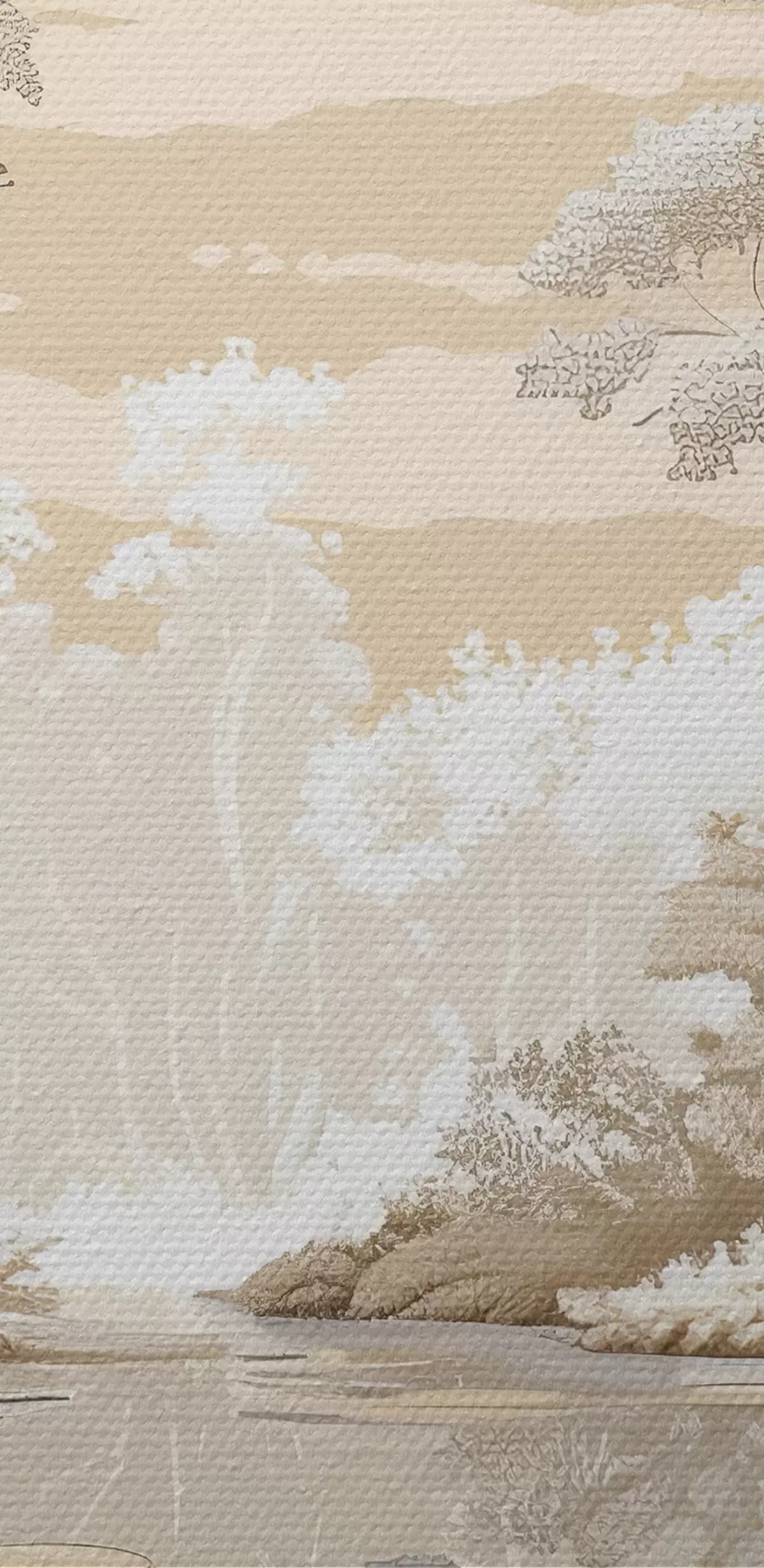 Peintures Magnifique paysage forestier, couleurs pastel douces, beige et blanc s39978