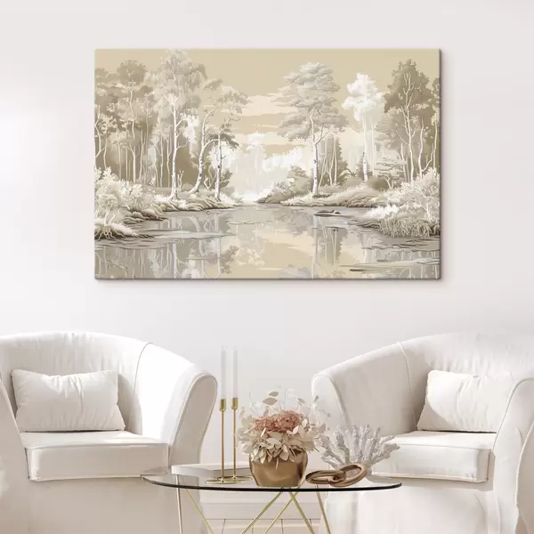Peinture Magnifique paysage forestier, couleurs pastel douces, beige et blanc Art. s39978