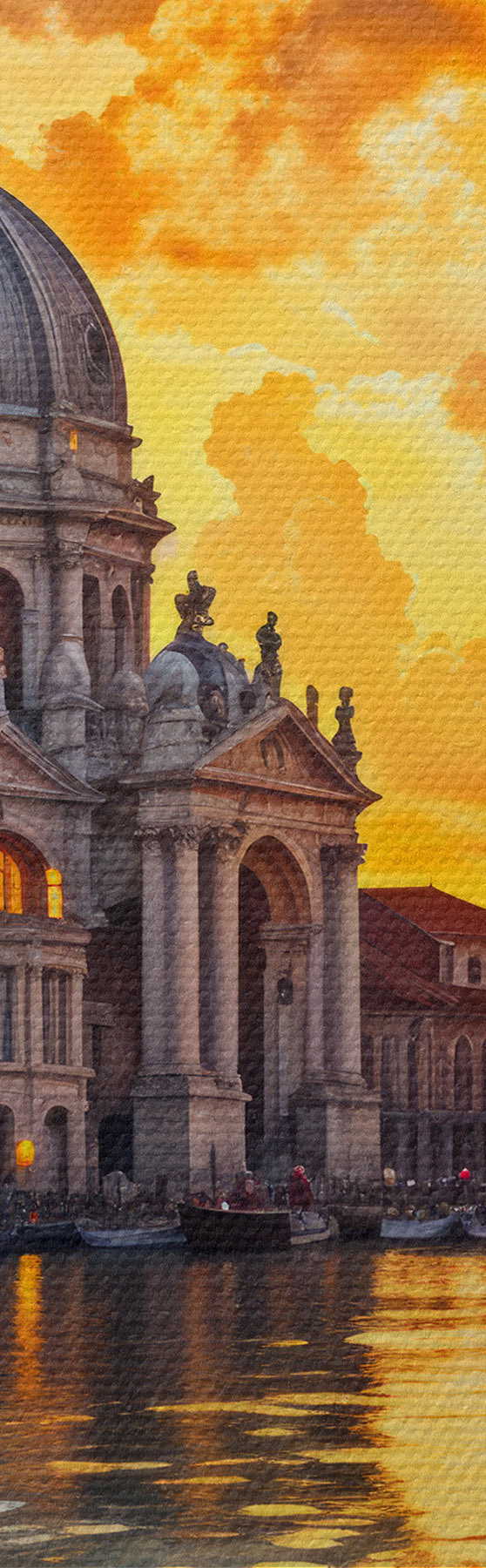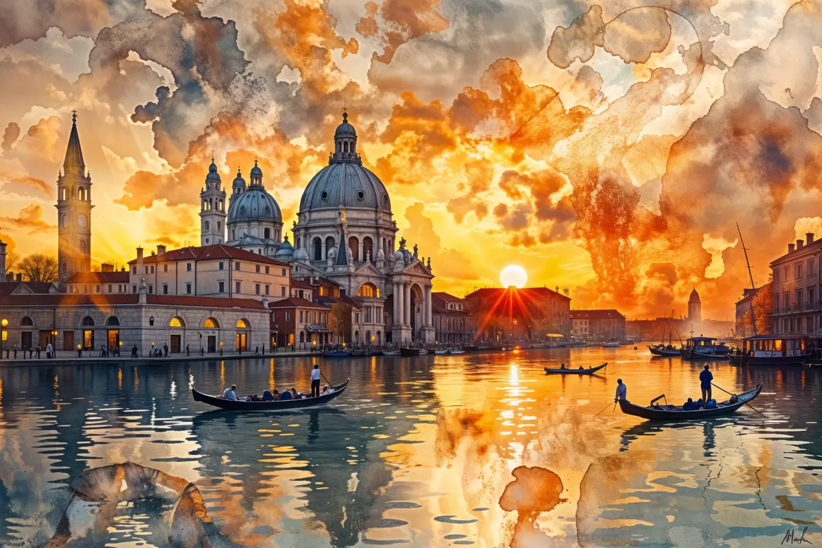 Peinture Un coucher de soleil coloré et spectaculaire sur le Grand Canal à Venise, en Italie, aquarelle Art. s40027