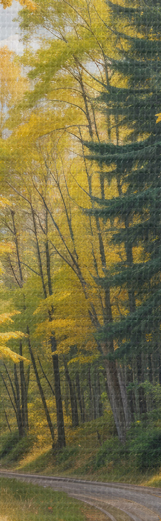 Peintures Un chemin de terre serpentant à travers une forêt en automne, avec de grands arbres des deux côtés s40031