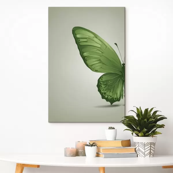 Peintures Aile gauche d'un papillon vert sur fond blanc s40062