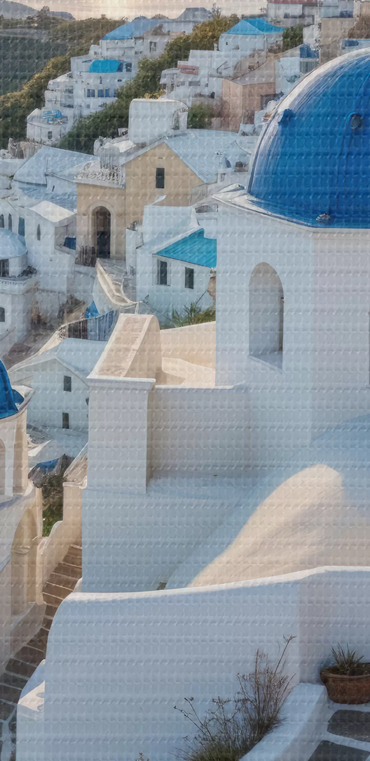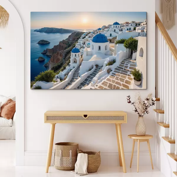 Peinture L'île de Santorin, en Grèce. La ville est construite sur une colline surplombant la mer Égée Art. s40160