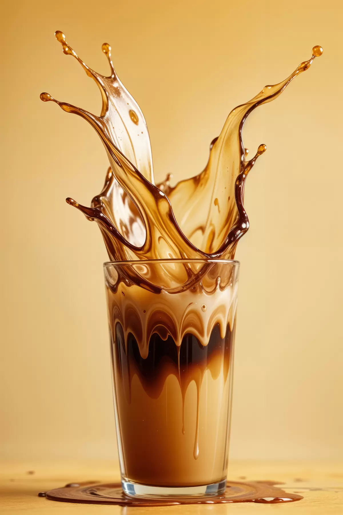 Peintures Un verre rempli de café avec un effet d'éclaboussure spectaculaire créant un visuel abstrait et dynamique s40165