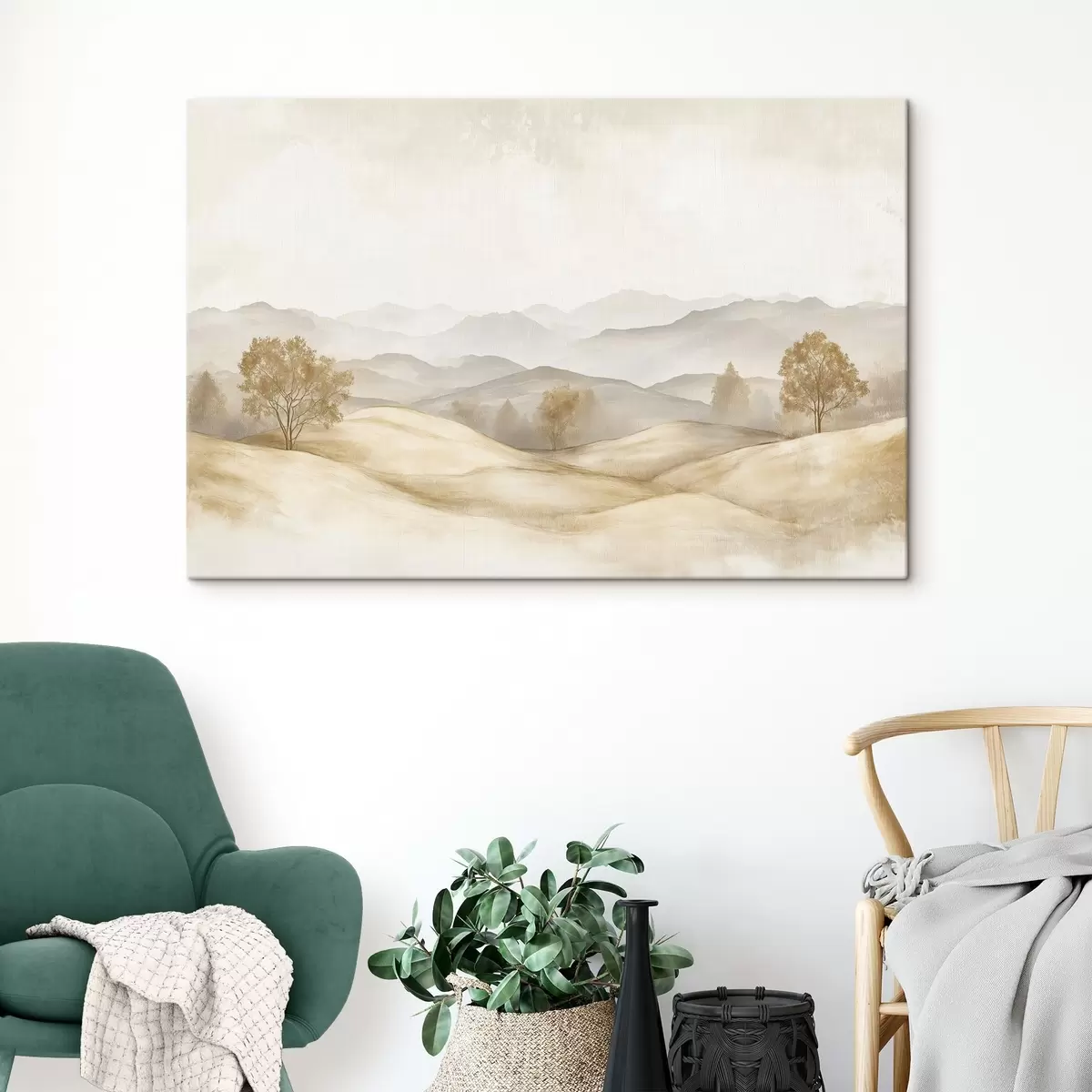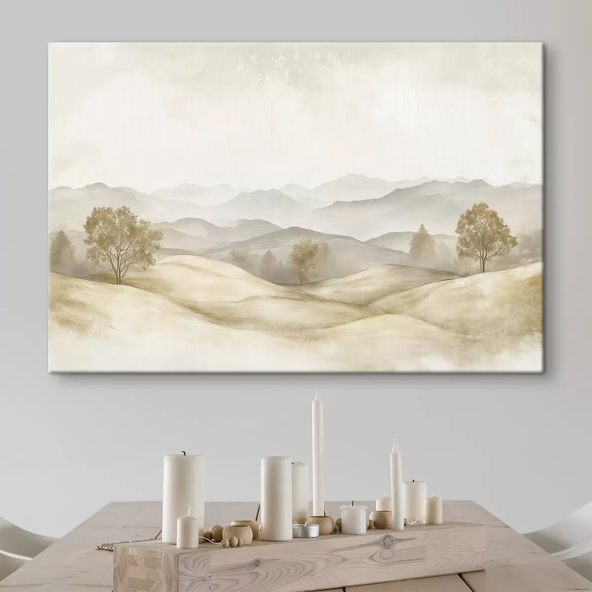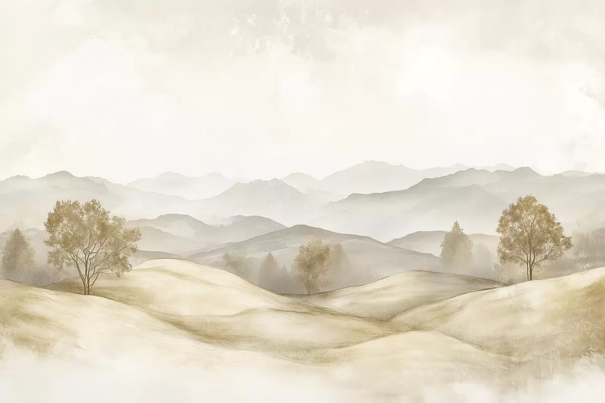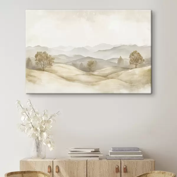 Peintures Paysage naturel dans une palette de couleurs beige, prairie, arbres, dessin à l'aquarelle s40231