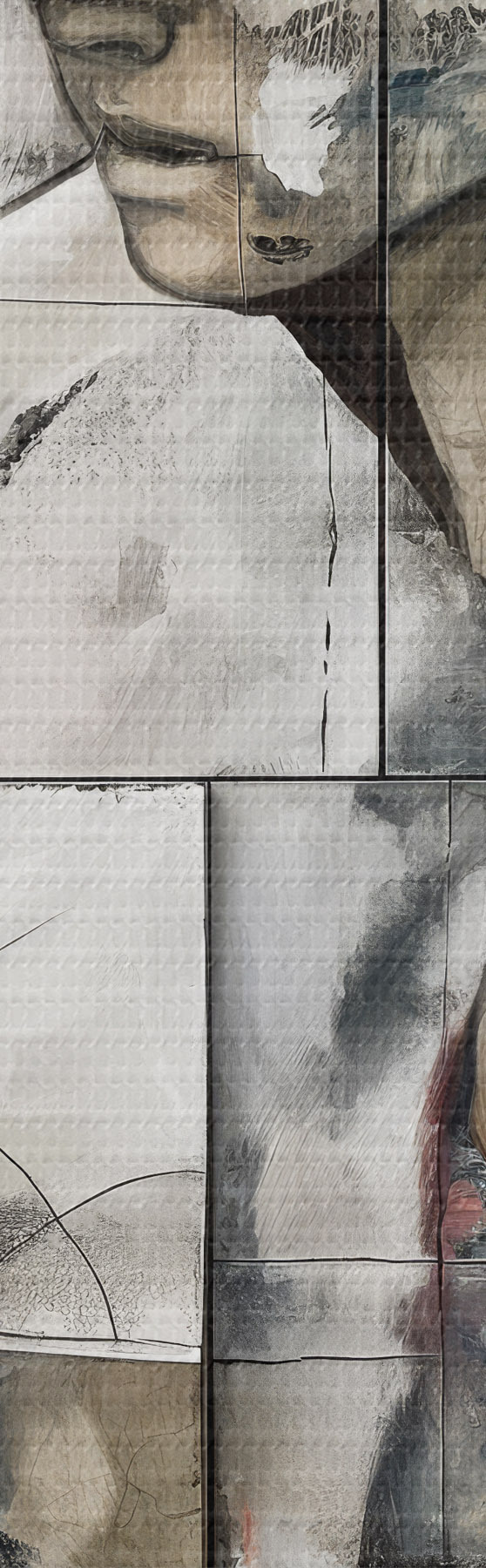 Pour tendre la toile sur des châssis sans endommager l'image, nous utilisons une image miroir.