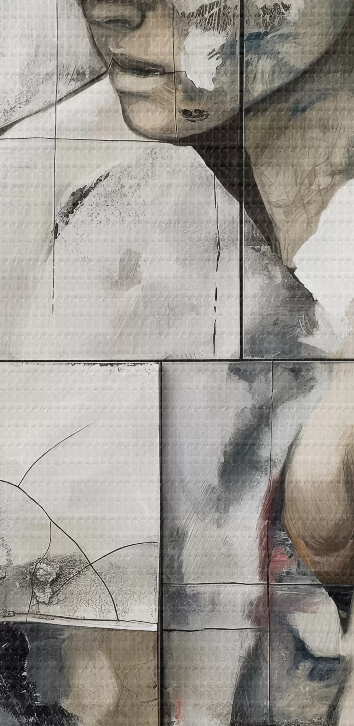 Pour tendre la toile sur des châssis sans endommager l'image, nous utilisons une image miroir.