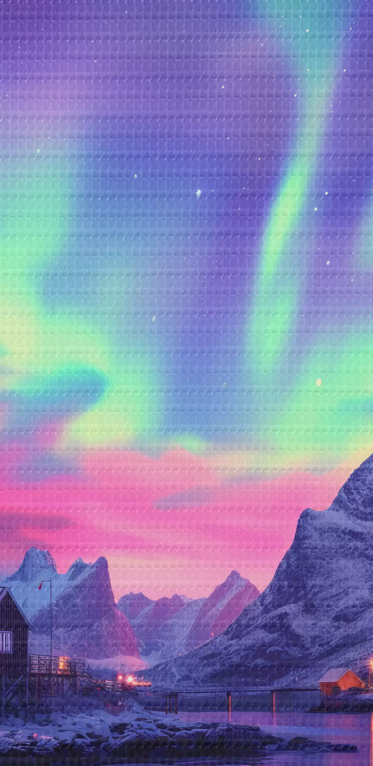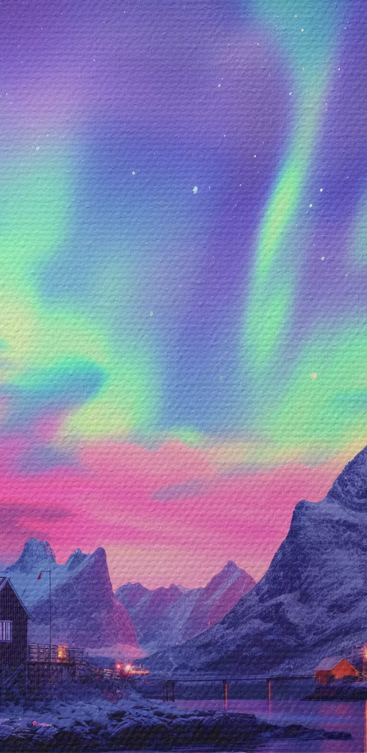 Peinture Lumières nordiques sur les îles Lofoten, Norvège nature, hiver Art. s40298