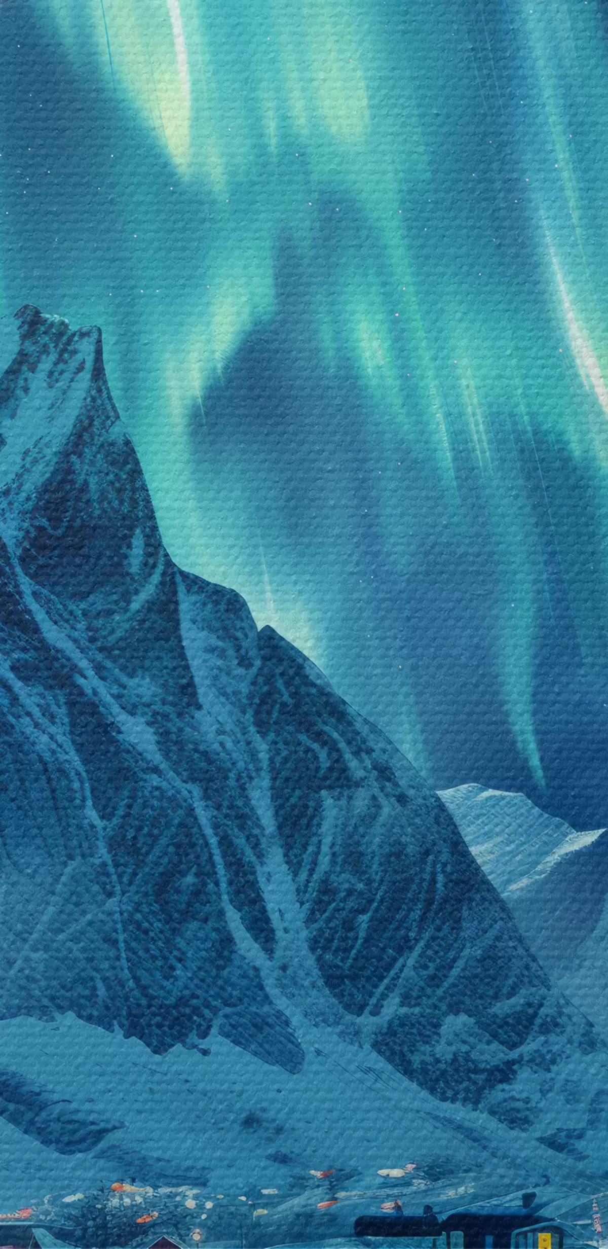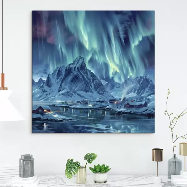 Peinture Lumières magiques, village d'hiver en Norvège Art. s40301
