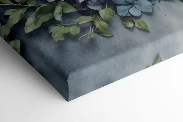 Peinture Fleurs et feuilles sur fond bleu Art. s40346