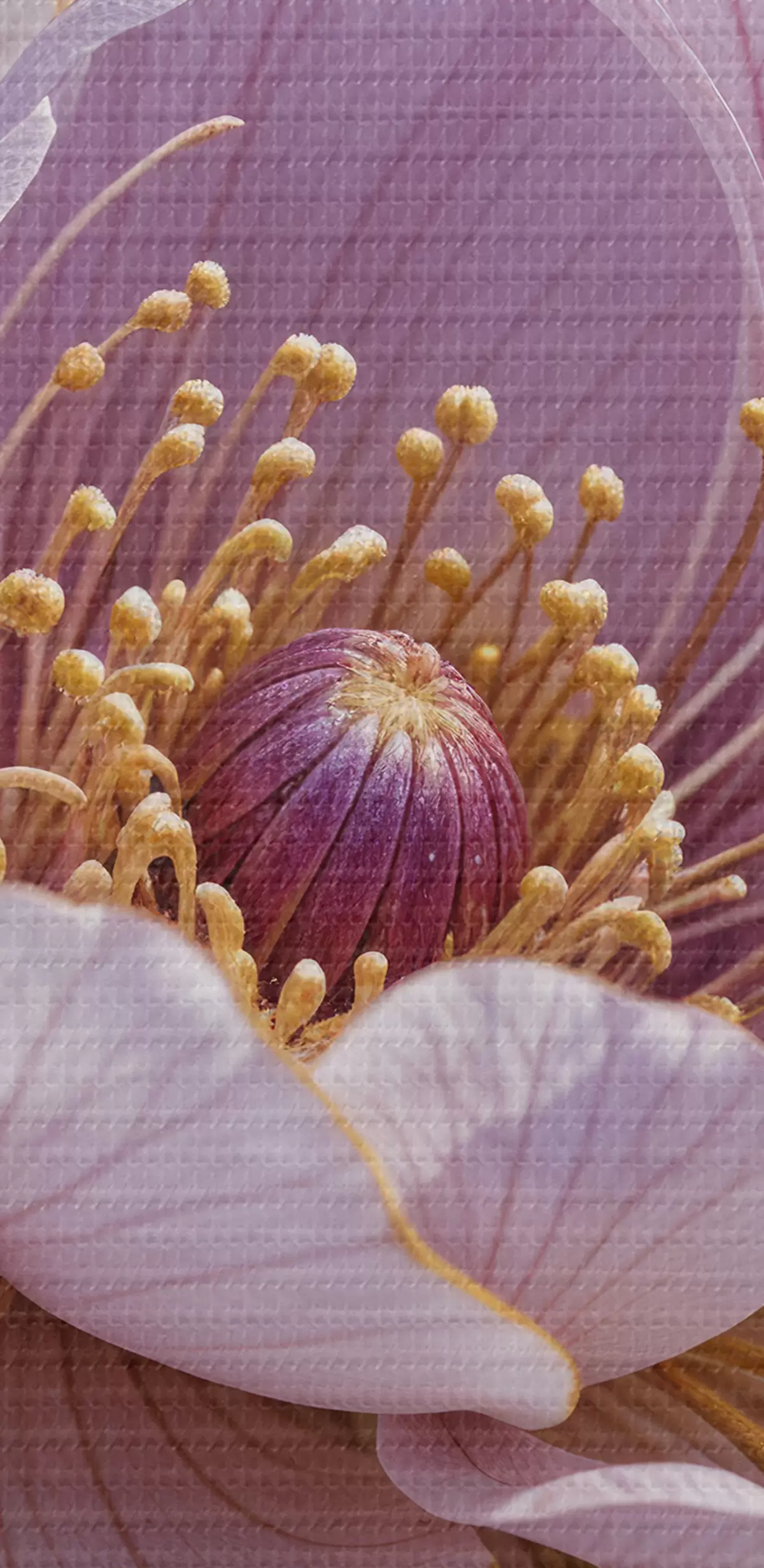Peintures Gros plan d'une grande fleur de pivoine rose pâle avec des pétales délicats et un centre jaune vif s40384