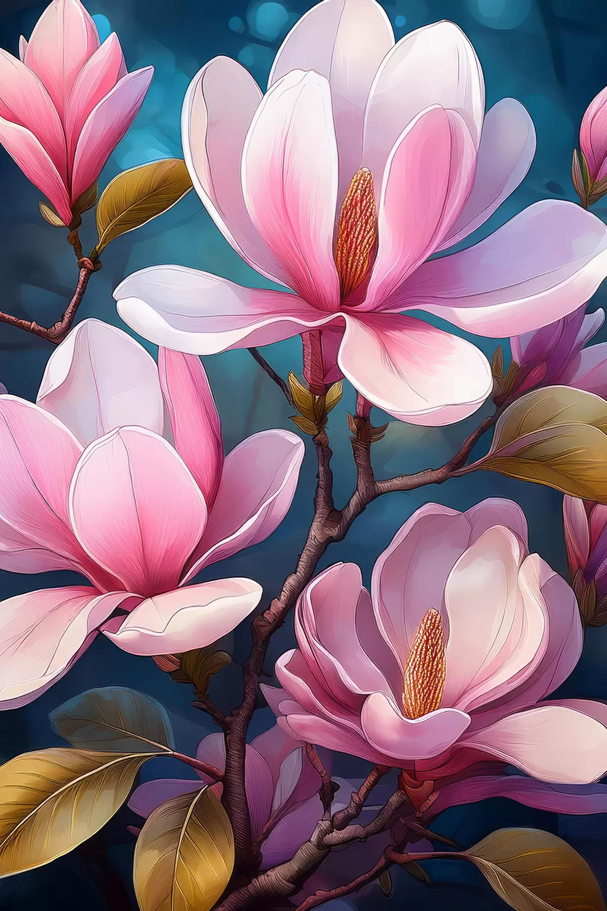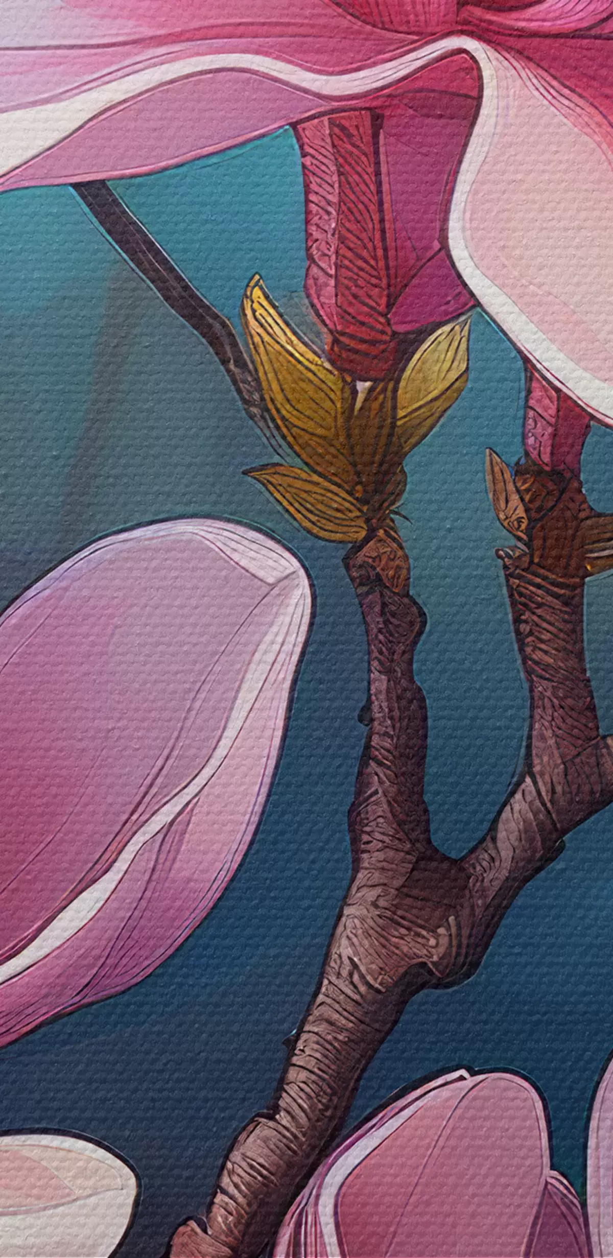 Peinture fleurs de magnolia, magnolia rose, grandes fleurs Art. s40425