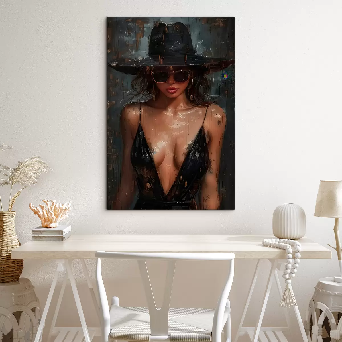 Peinture Fille en robe noire et chapeau noir Art. s40441