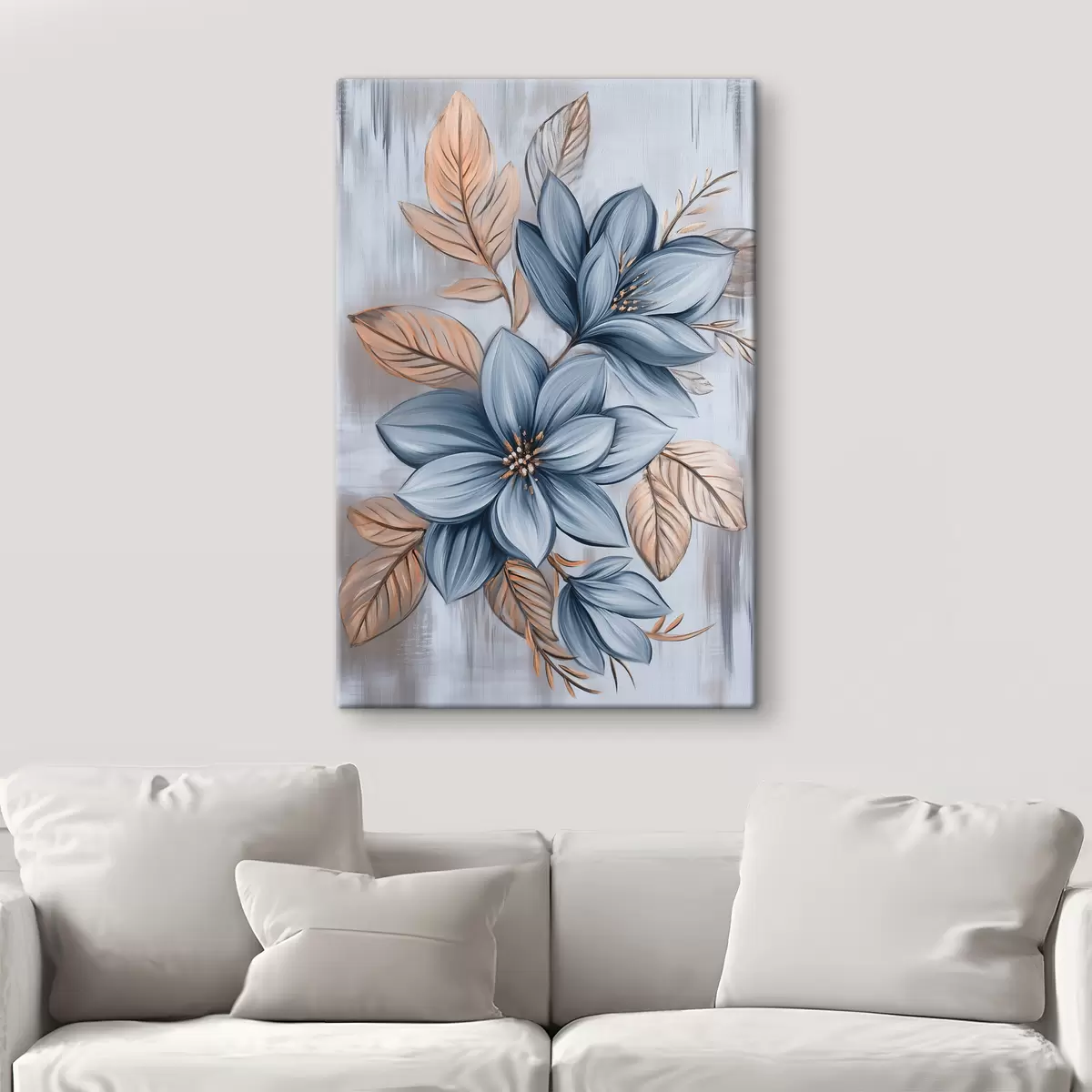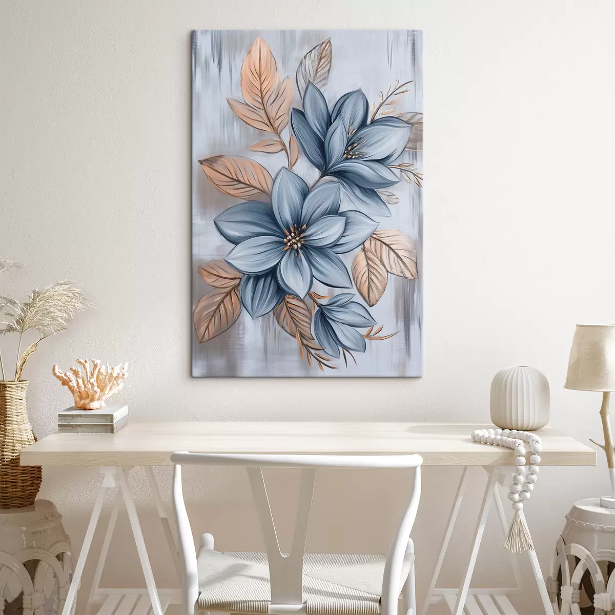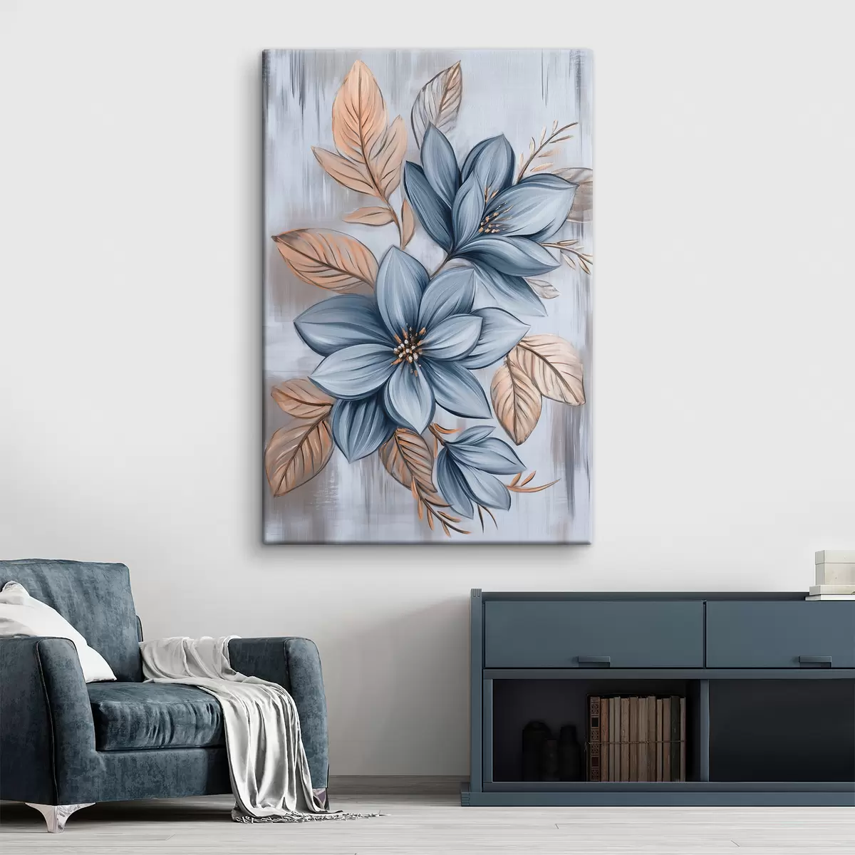 Peinture Fleurs bleues sur fond gris Art. s40453