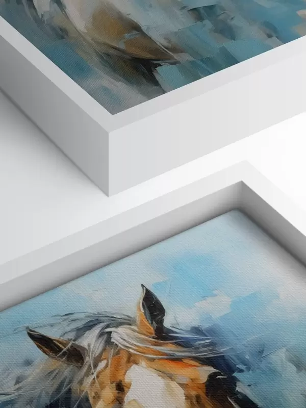 Peinture Peinture abstraite de chevaux, couleur blanche, bleue et marron Art. s40493