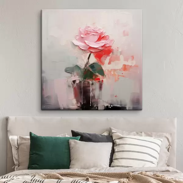 Peintures Rose abstraite dans un vase, couleur grise, rose, rouge s40515