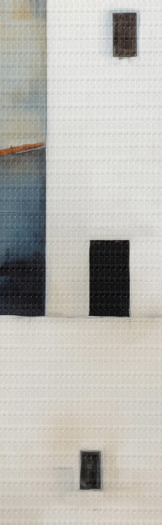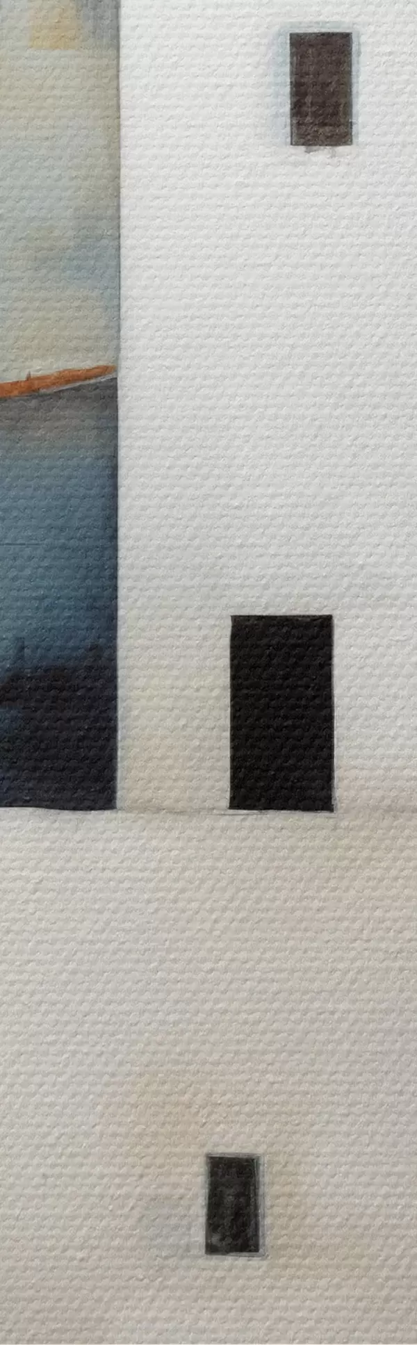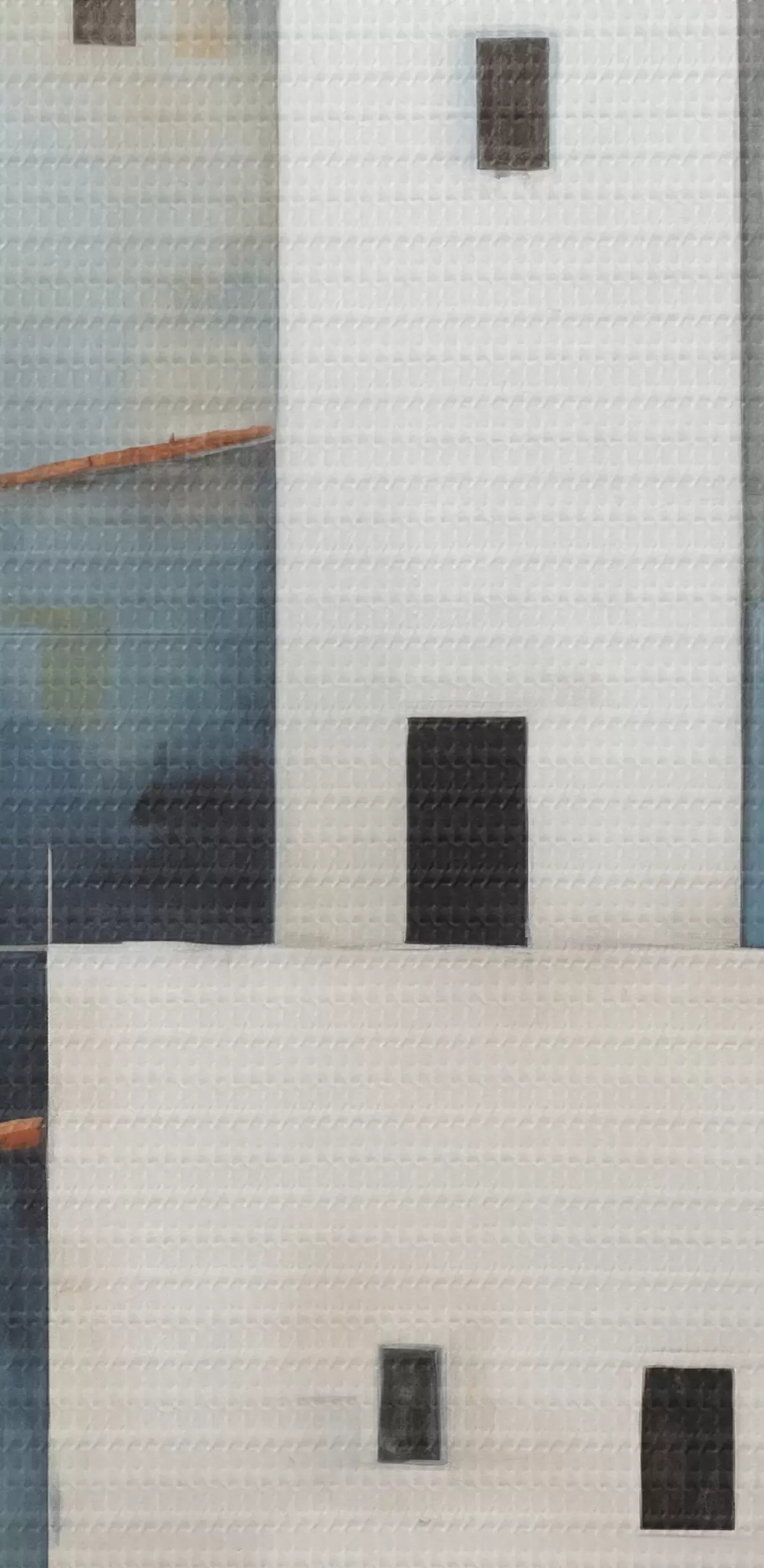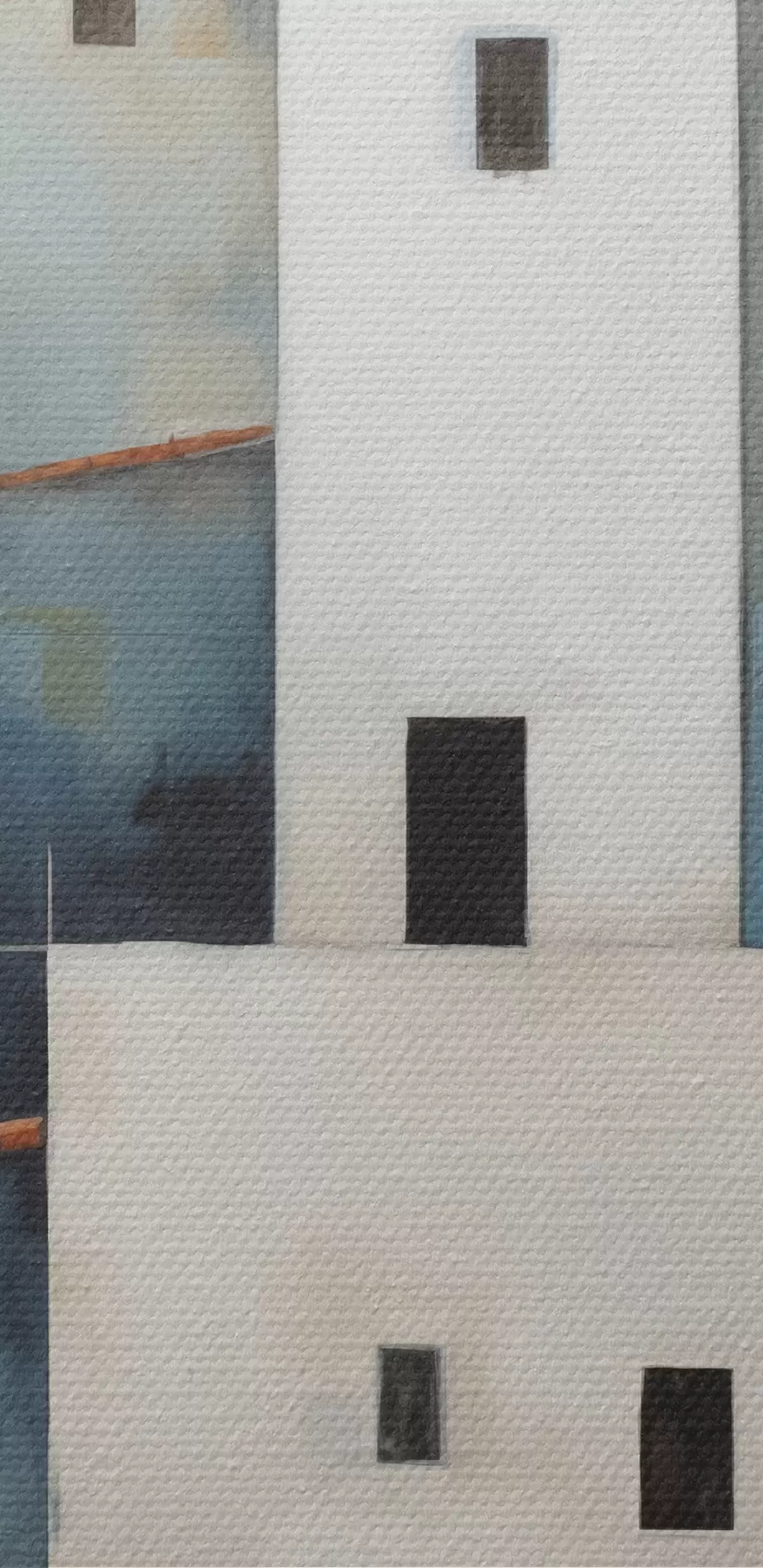 Peinture Maisons stylisées blanches abstraites, couleur rouge, orange, jaune, bleu Art. s40531