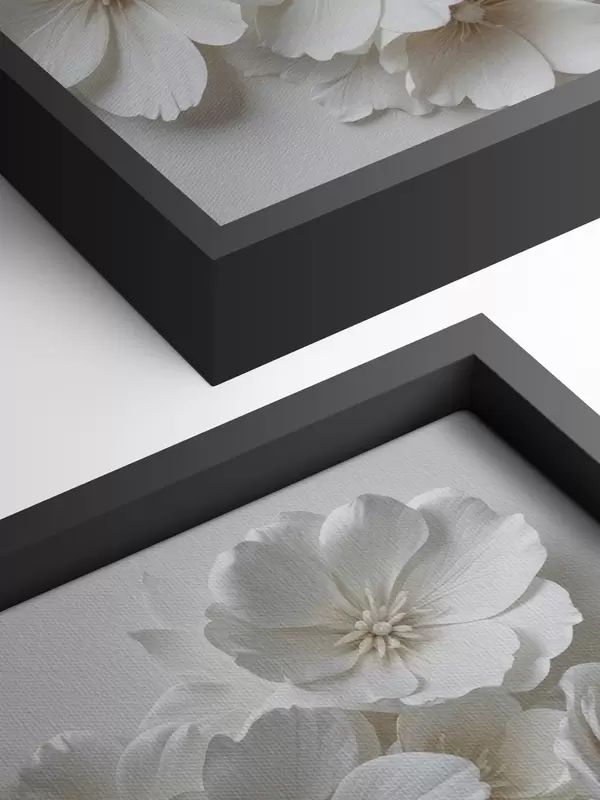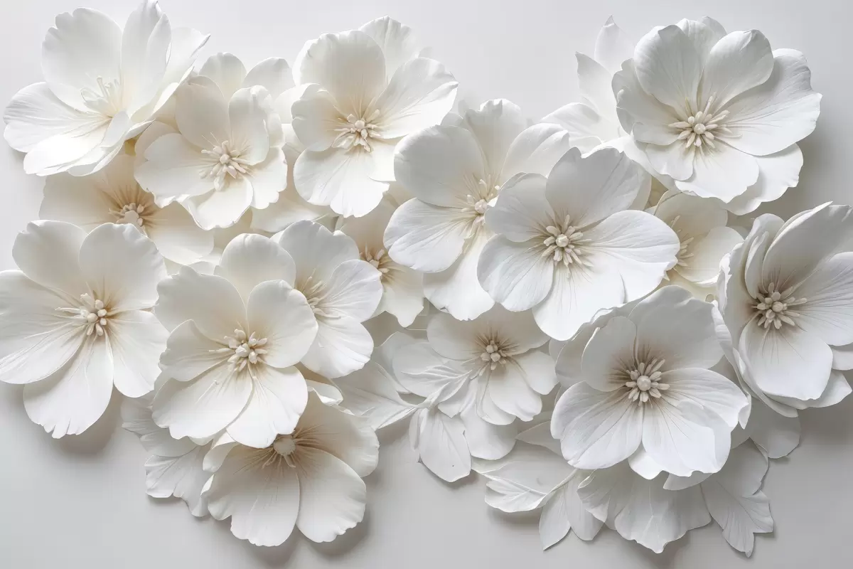 Peintures Fleurs blanches aux pétales délicats disposées dans un joli motif floral sur un fond clair s40548