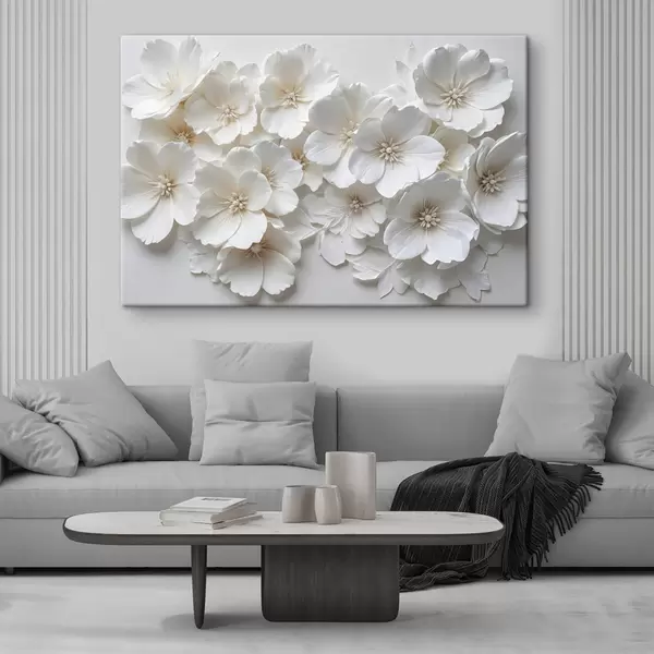 Peinture Fleurs blanches aux pétales délicats disposées dans un joli motif floral sur un fond clair Art. s40548