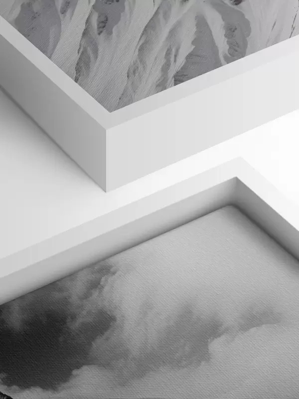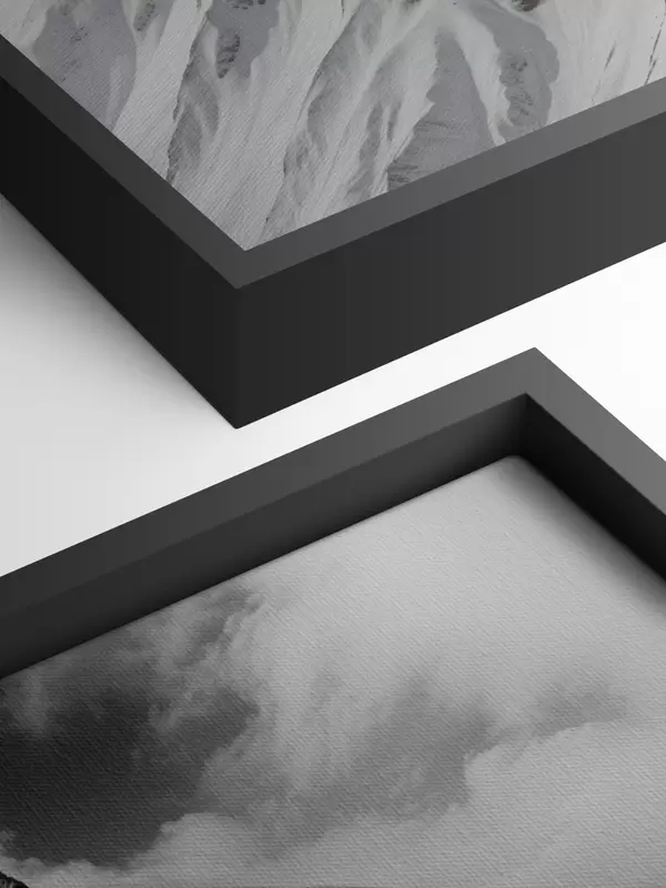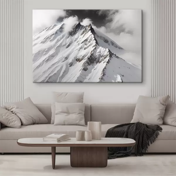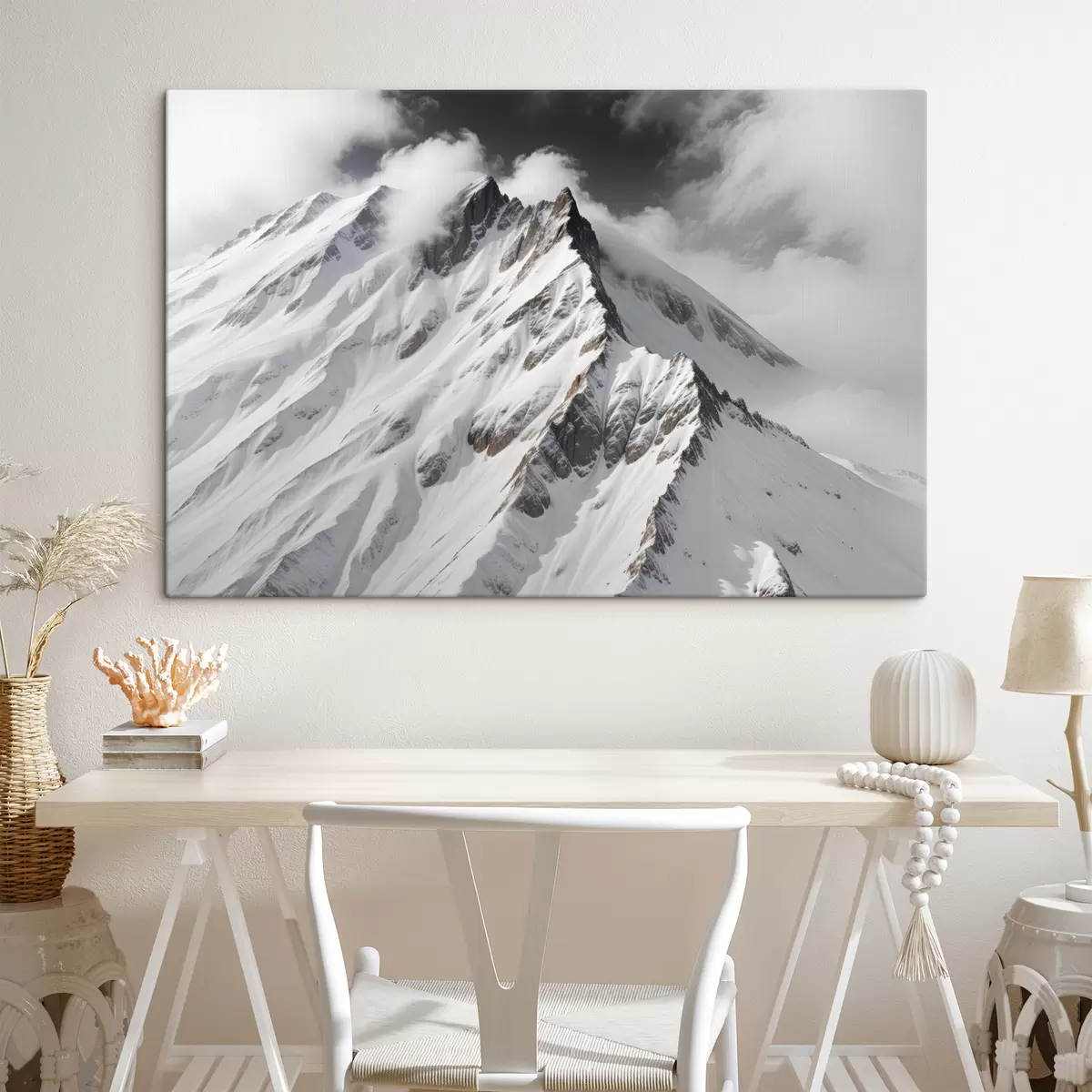 Peinture Des sommets enneigés en noir et blanc dans un paysage nuageux et dramatique Art. s40553