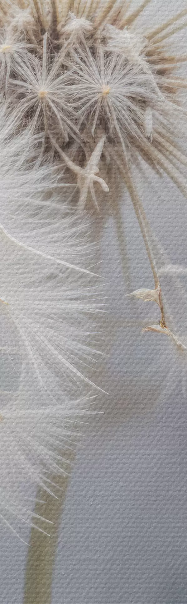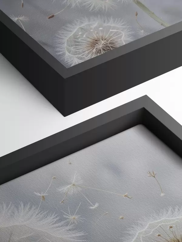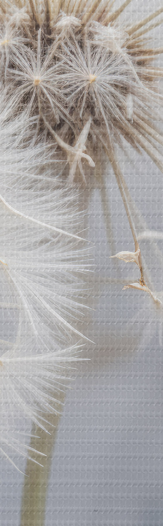 Peinture Fleurs de pissenlit blanches avec des graines duveteuses sur un fond gris flou Art. s40556