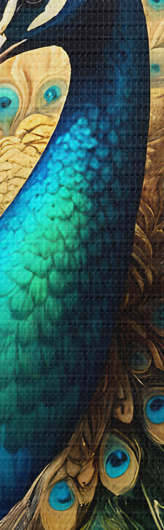 Peinture Un paon vibrant avec ses plumes entièrement déployées, mettant en valeur son superbe plumage bleu, vert Art. s40571