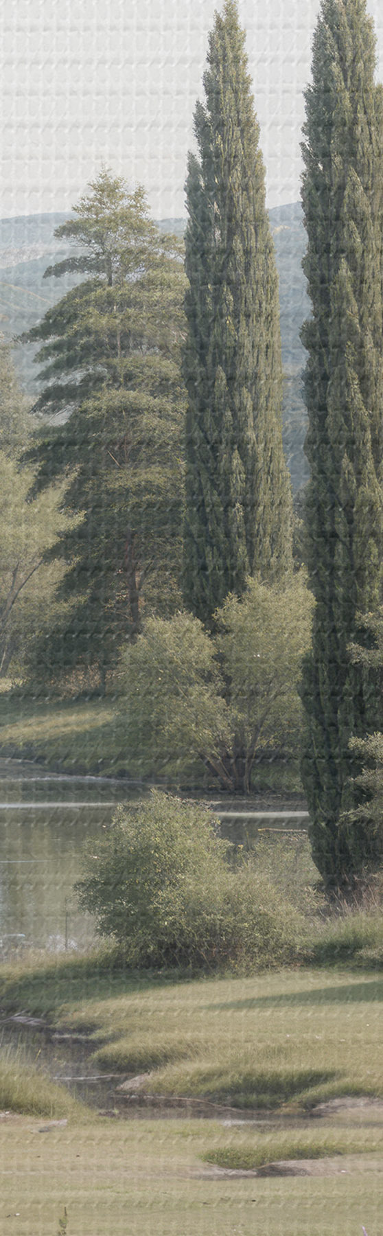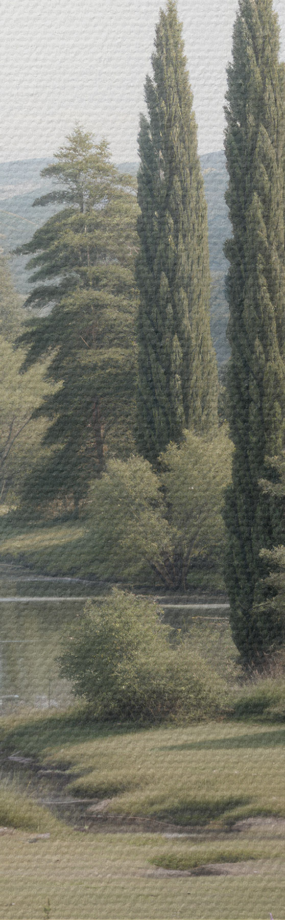 Peintures Un paysage serein avec un lac tranquille entouré de pins, de cyprès et d'autres végétations luxuriantes s40579