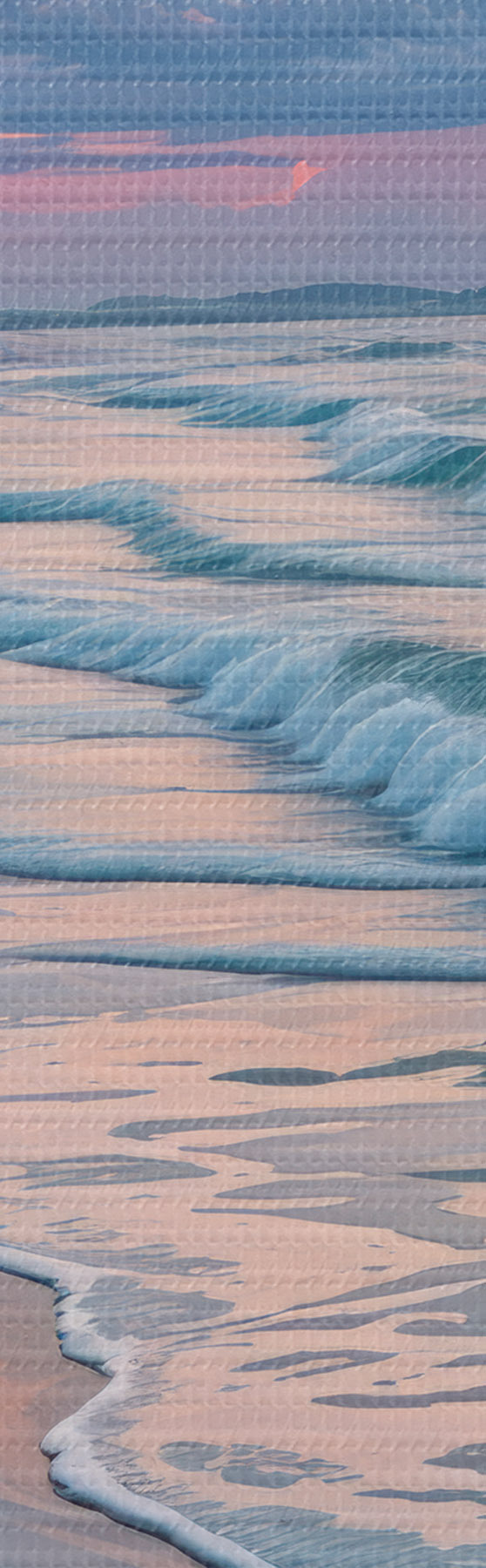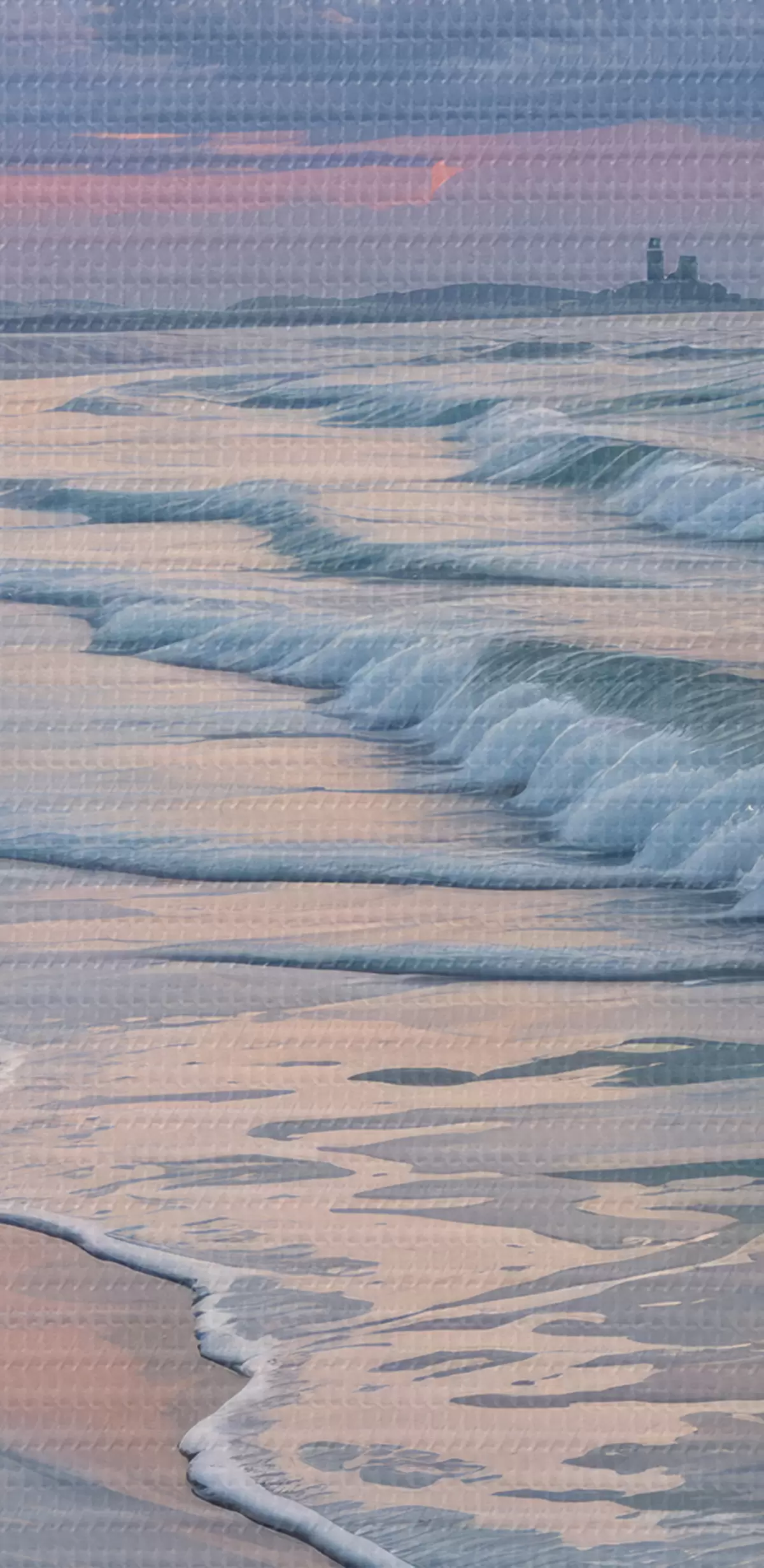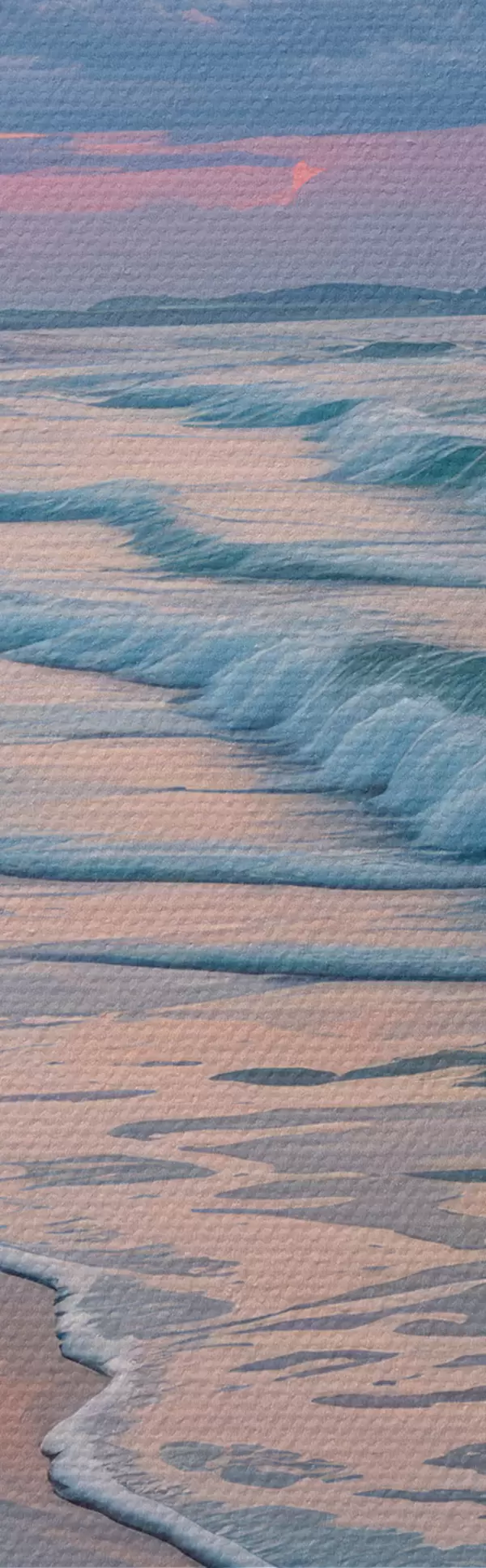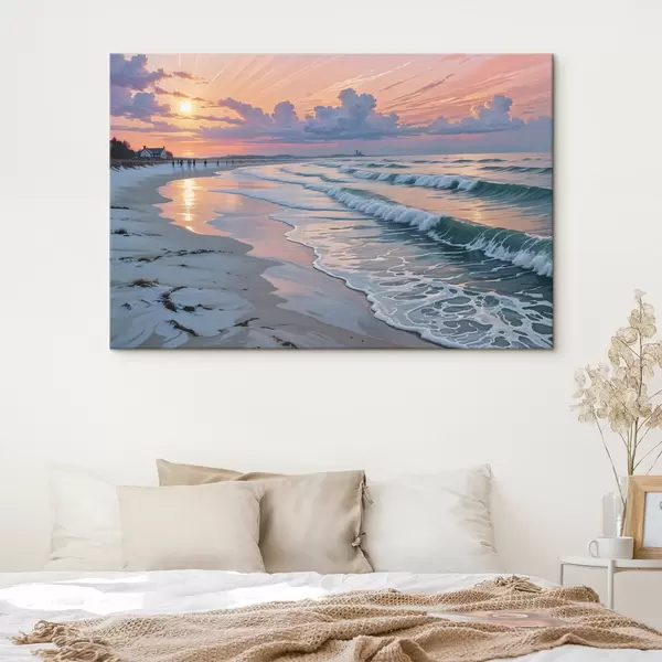 Peinture Une scène de plage sereine au coucher du soleil, avec de douces vagues s'échouant sur le rivage sablonneux Art. s40606
