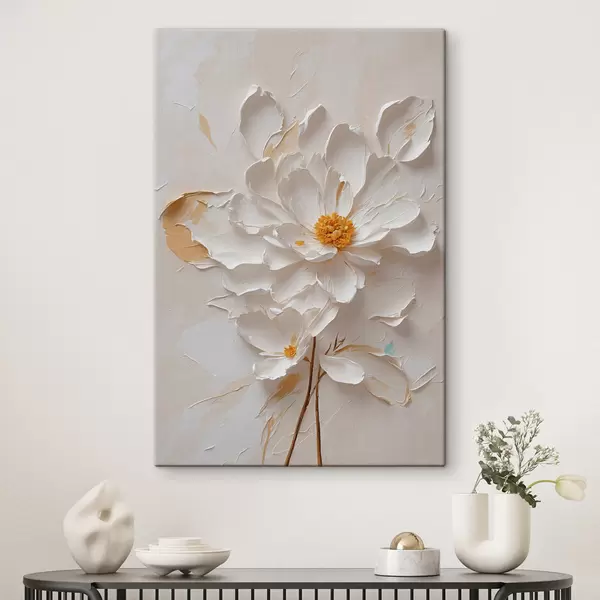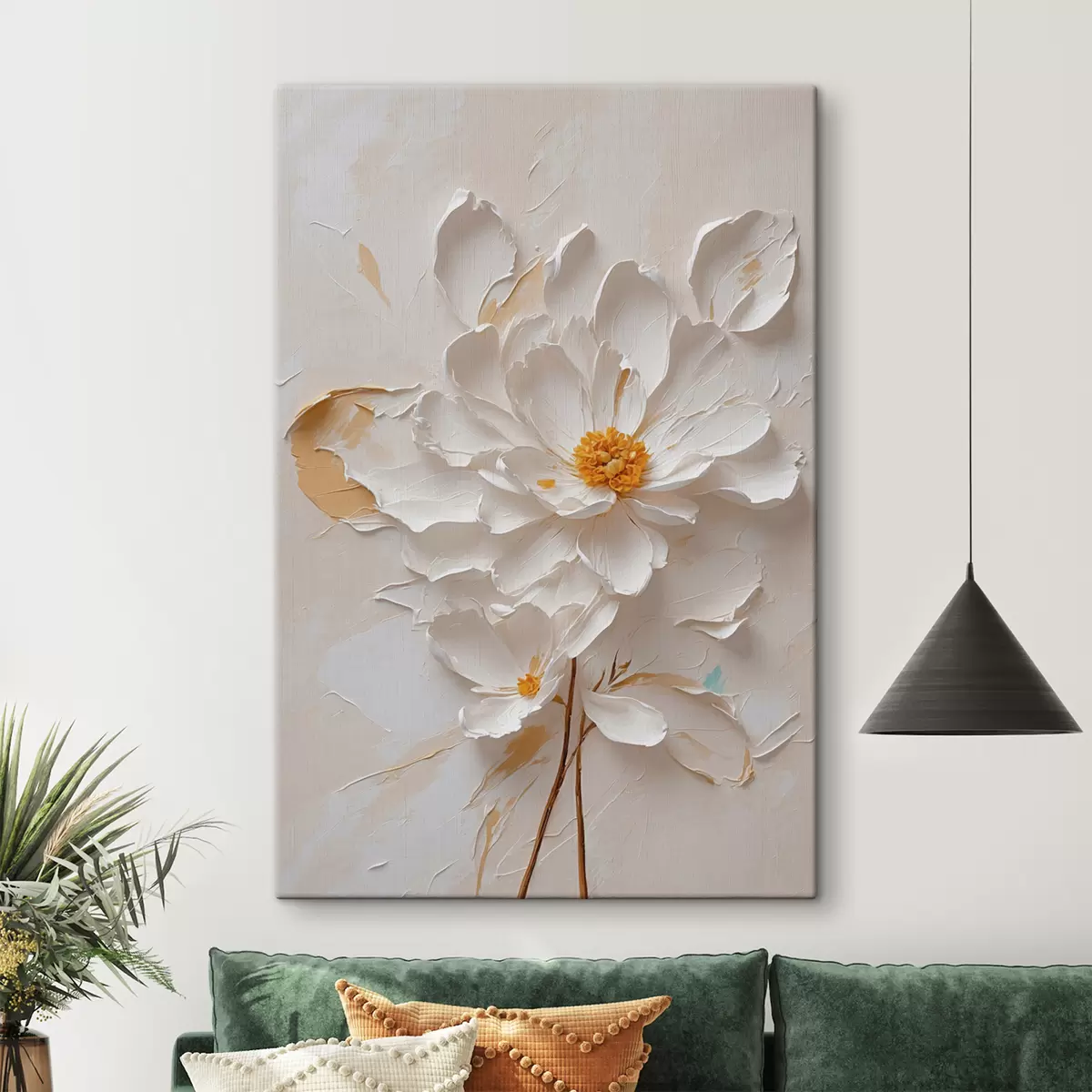 Peinture Fleur blanche dans l'huile avec tige brune Art. s40619