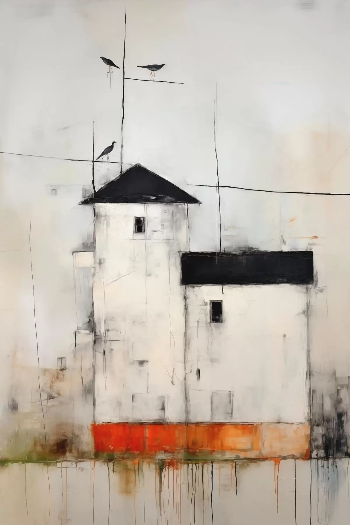 Peinture Scène abstraite avec oiseaux et bâtiment Art. s40685