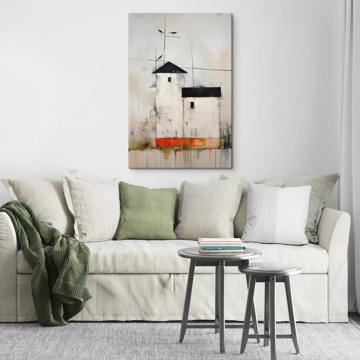 Peintures Scène abstraite avec oiseaux et bâtiment s40685
