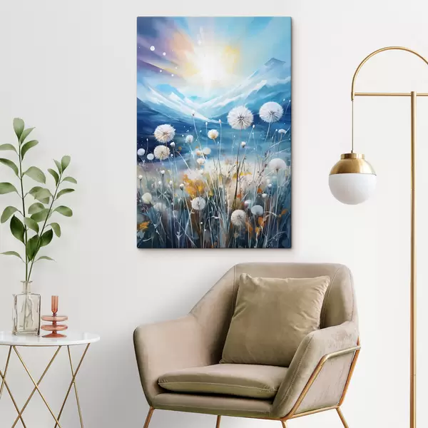 Peinture Montagnes ensoleillées et pissenlits en fleurs Art. s40720
