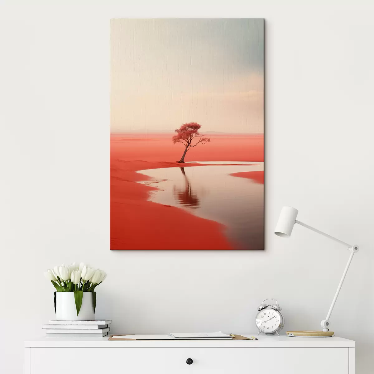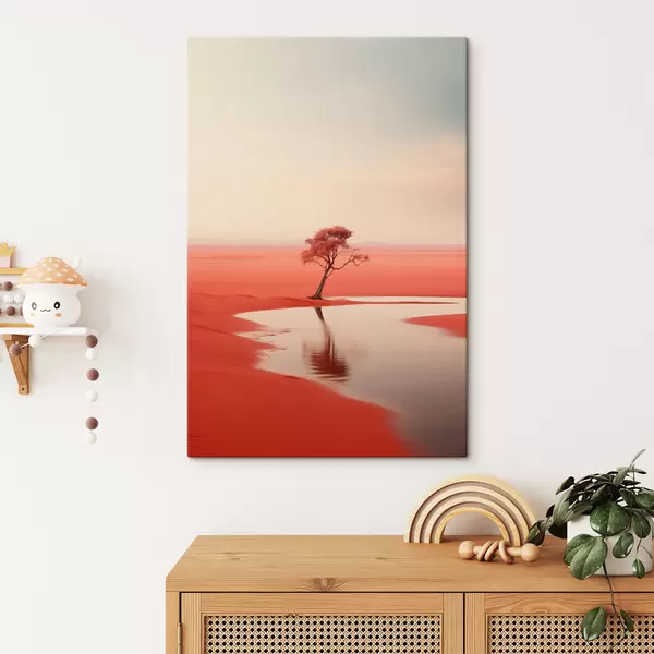 Peintures Paysage minimaliste arbre au bord de la rivière, couleur rouge, gris s40722