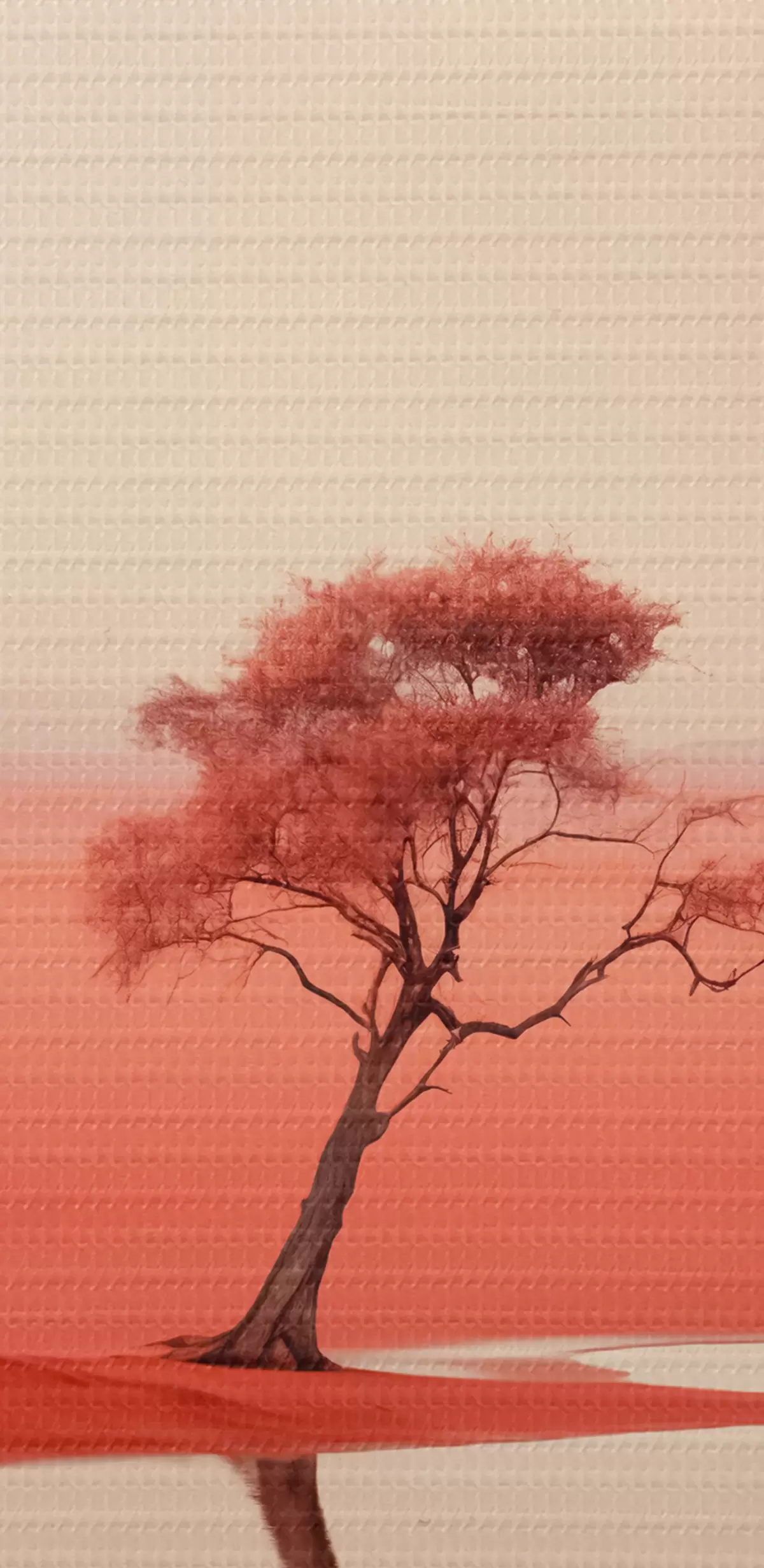 Peinture Paysage minimaliste arbre au bord de la rivière, couleur rouge, gris Art. s40722