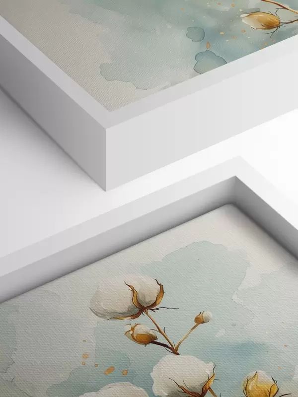 Peintures Branche de coton sur fond d'aquarelle s40780