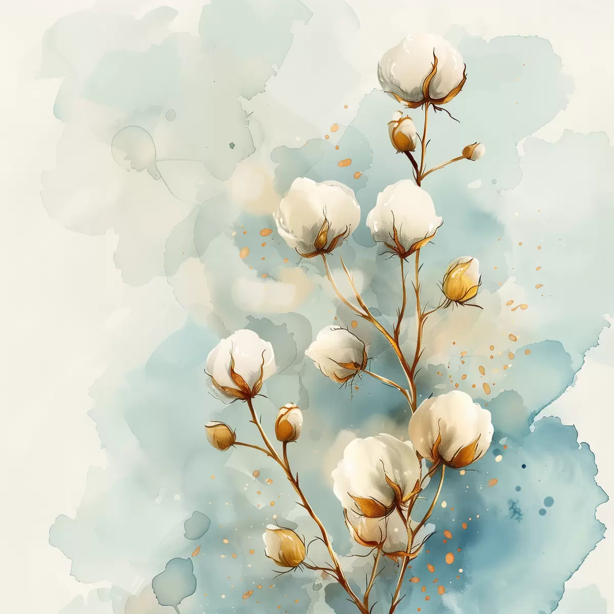 Peintures Branche de coton sur fond d'aquarelle s40780