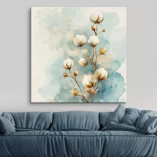 Peinture Branche de coton sur fond d'aquarelle Art. s40780