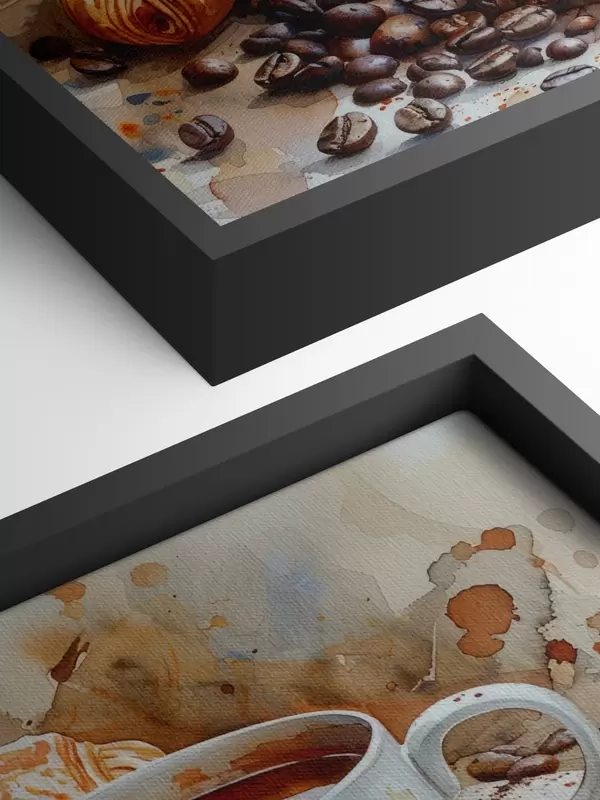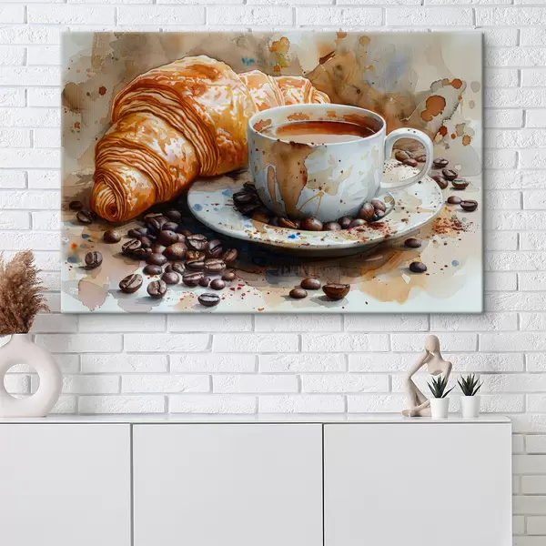 Peintures Croissant, matin, croissant et tasse de café, aquarelle s40782