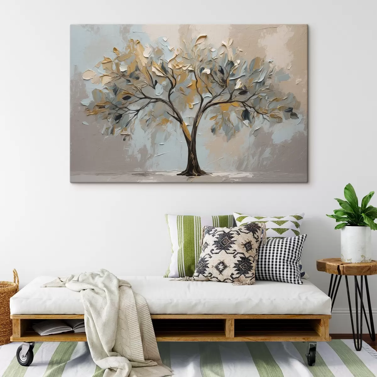 Trois types de matériaux peuvent être commandés : Economic Canvas - matériau dense et durable pour l'impression numérique, identique à la toile de peintre, surface imperméable, reproduction réaliste des détails, matériau à grain moyen. Premium Canvas - la texture ressemble à celle d'une toile de peintre (petits fils entrelacés). Reproduction douce et détaillée de l'image sur une surface mate. Eco-Premium - tissu 100 % coton de haute qualité. Grâce aux fibres naturelles de coton, le matériau est durable et résistant à l'usure. Excellente reproduction des couleurs et des détails.