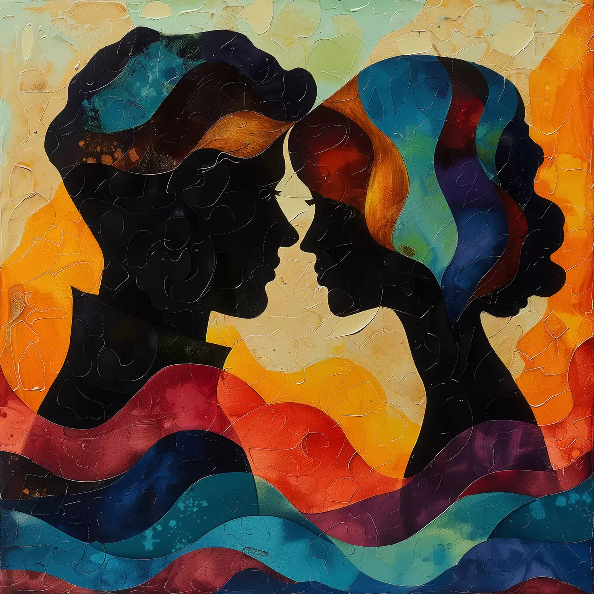 Peinture Silhouettes aquarelles d'un couple amoureux Art. s40938