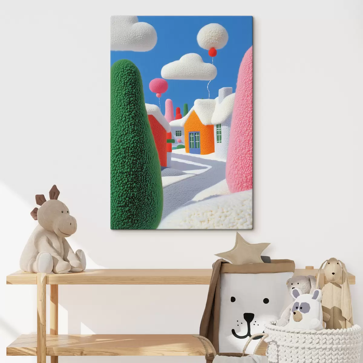 Peintures Une rue avec des nuages et des ballons en feutre s40970