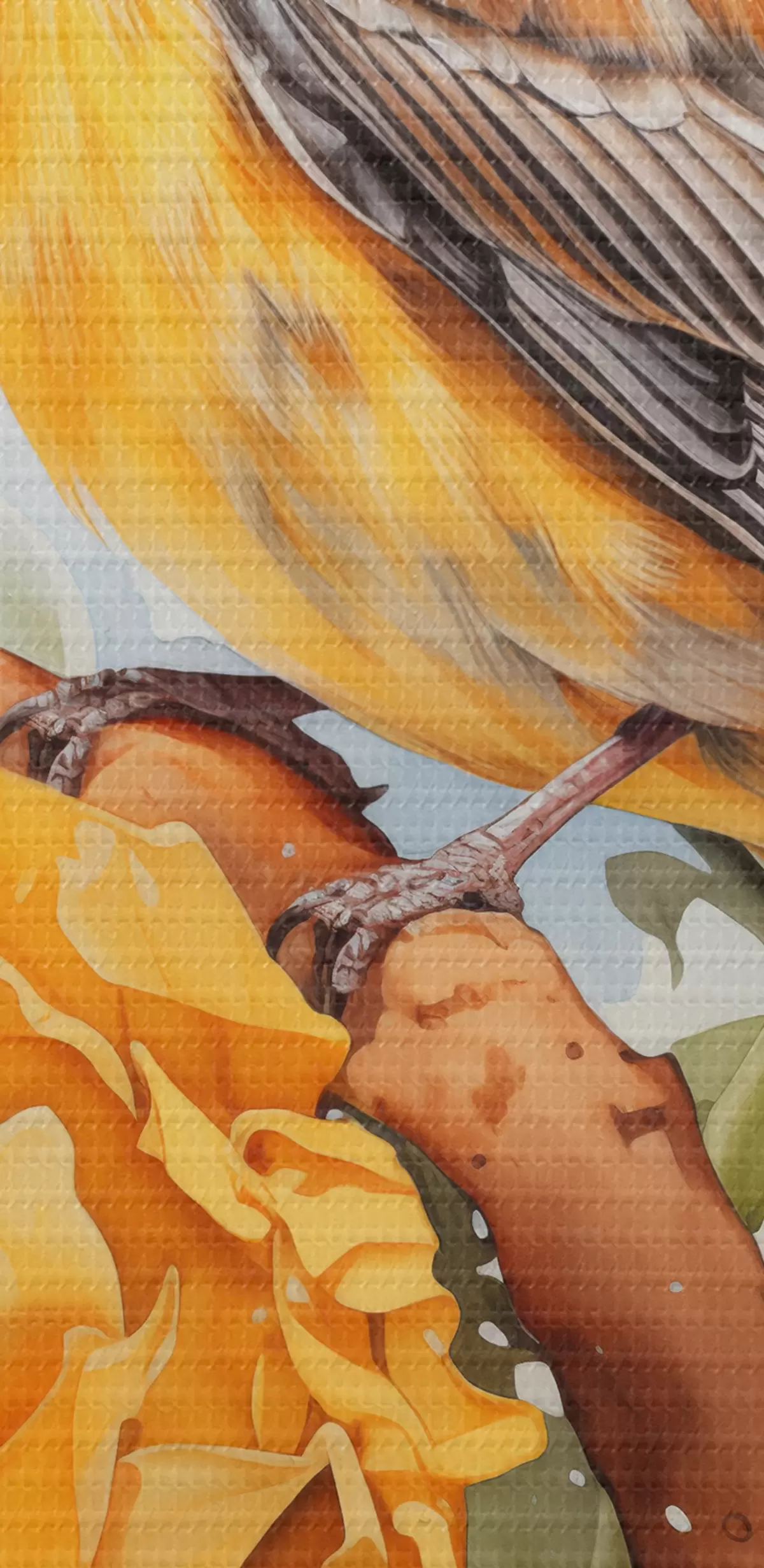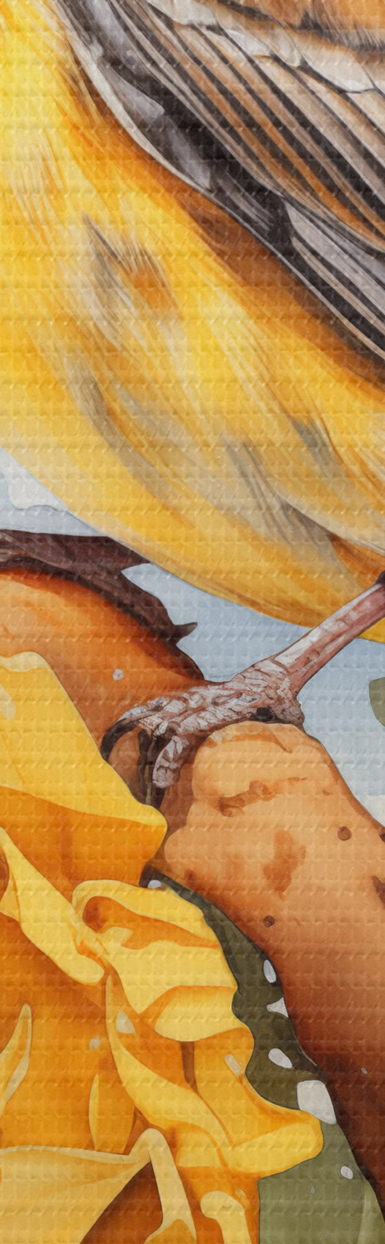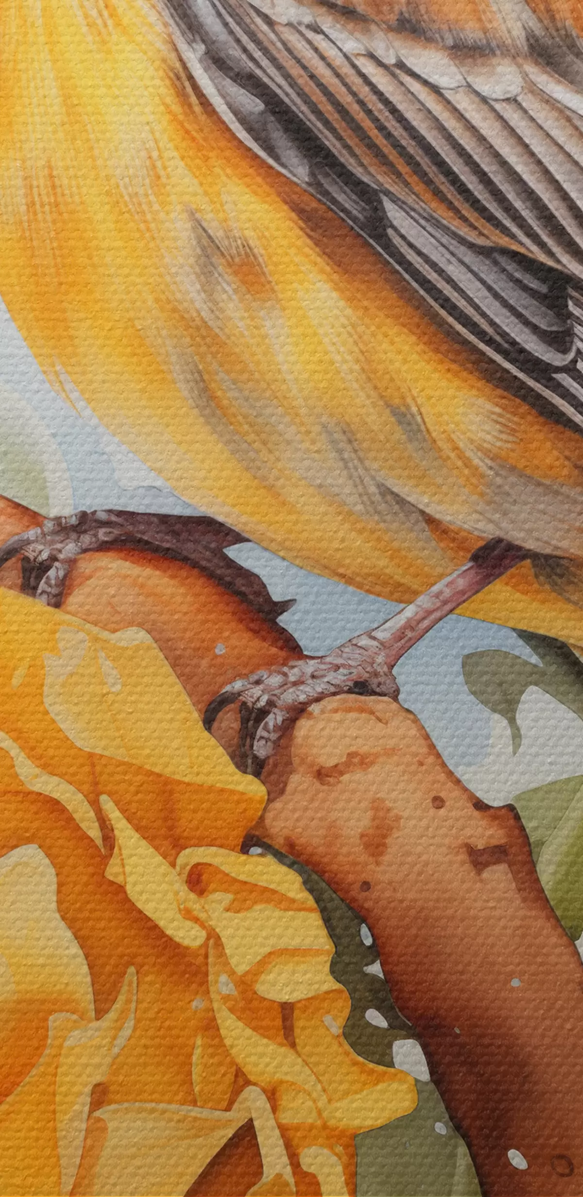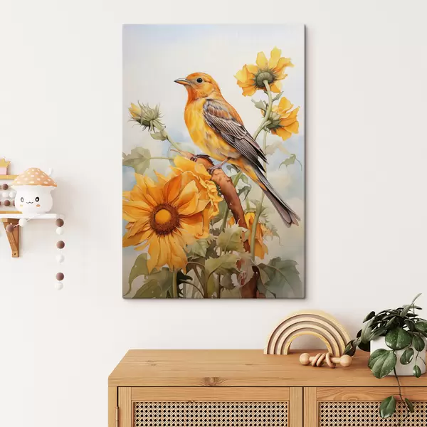 Peinture Oiseau jaune assis sur un tournesol aquarelle Art. s41015