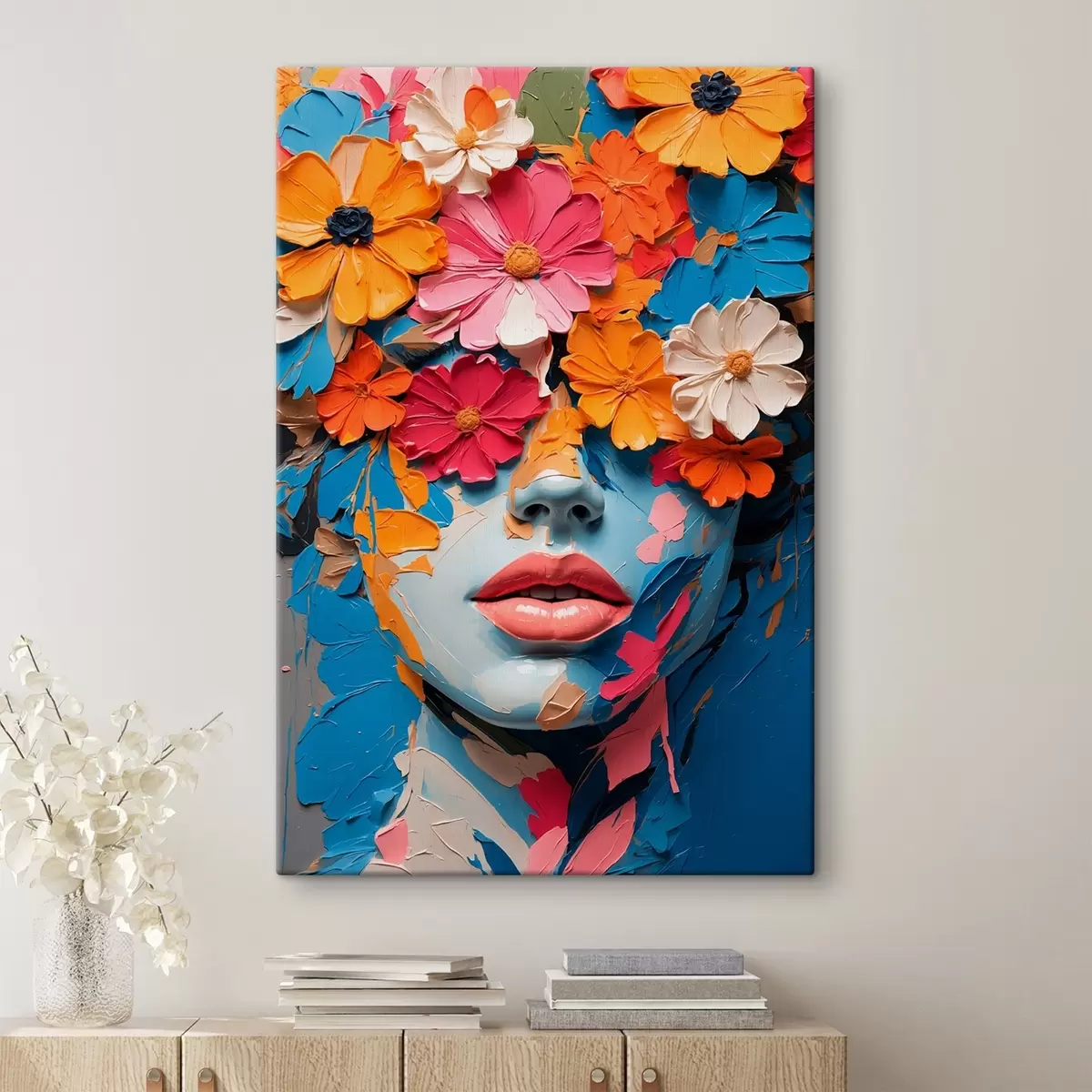 Peinture Visage d'une jeune fille couvert de fleurs dans de l'huile Art. s41023