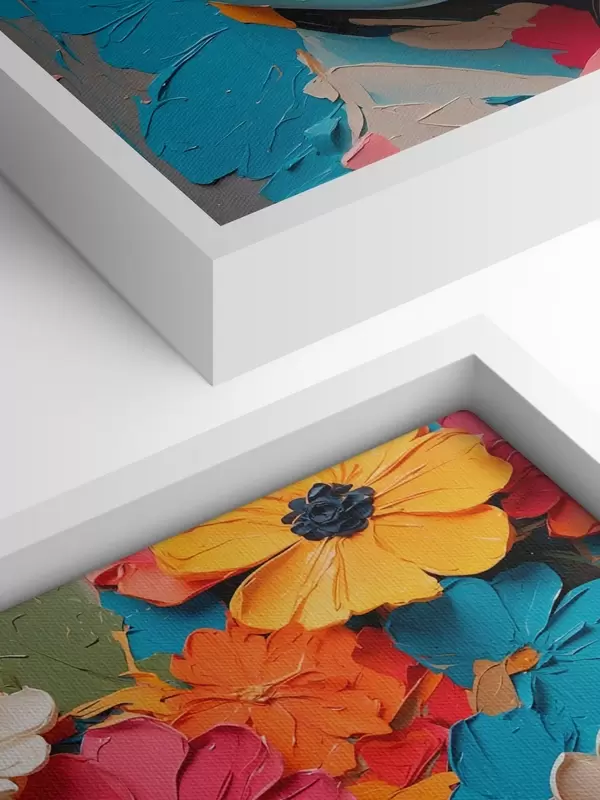Trois types de matériaux peuvent être commandés : Economic Canvas - matériau dense et durable pour l'impression numérique, identique à la toile de peintre, surface imperméable, reproduction réaliste des détails, matériau à grain moyen. Premium Canvas - la texture ressemble à celle d'une toile de peintre (petits fils entrelacés). Reproduction douce et détaillée de l'image sur une surface mate. Eco-Premium - tissu 100 % coton de haute qualité. Grâce aux fibres naturelles de coton, le matériau est durable et résistant à l'usure. Excellente reproduction des couleurs et des détails.
