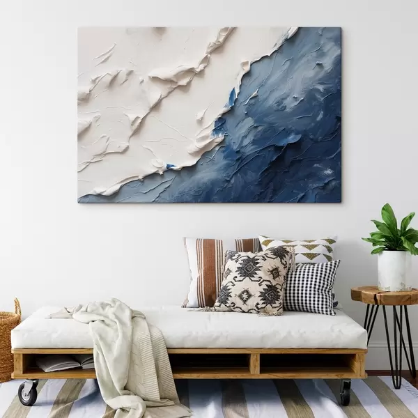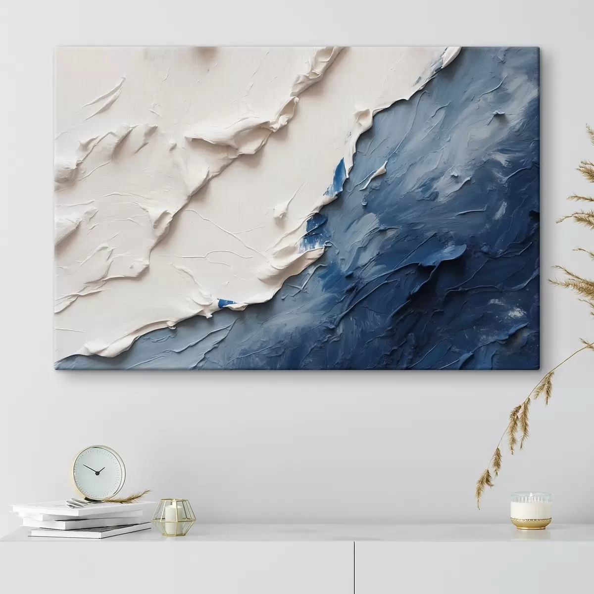 Peinture Abstraction avec des couleurs à l'huile blanches et bleues Art. s41025