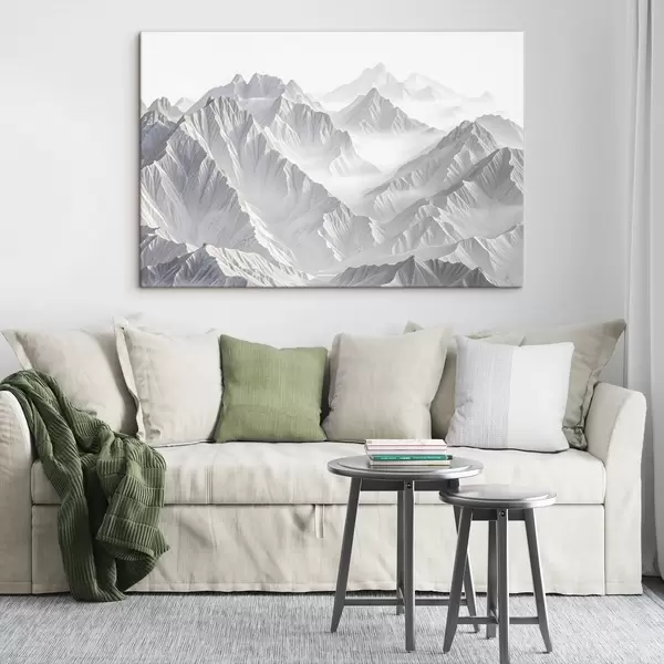Peinture Pics montagneux enneigés et minimalistes dans un paysage brumeux et vaporeux Art. s41083