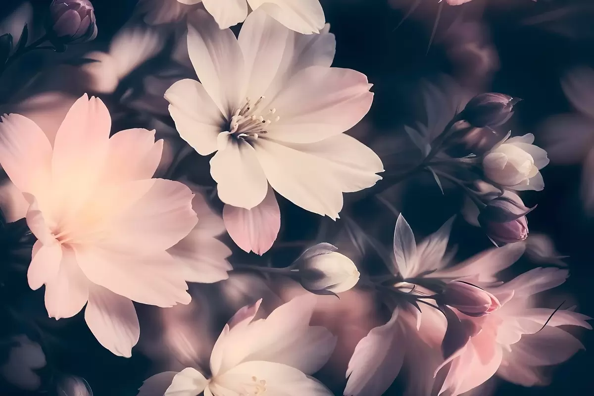 Peinture Fleurs vintage légères roses et blanches sur fond flou Art. s41084
